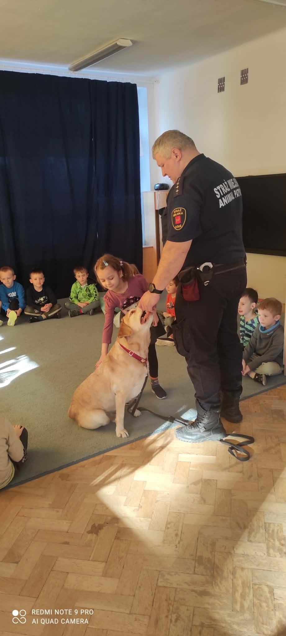 W przedszkolu gościliśmy funkcjonariusza Straży Miejskiej w Łodzi z sekcji Animal Patrol, który na co dzień pomaga zwierzętom znajdującym się w potrzebie wraz z jego czworonożnym przyjacielem. Dzieci dowiedziały się, jak bezpiecznie i z szacunkiem zachowywać się wobec zwierząt.