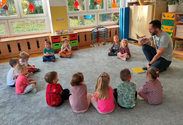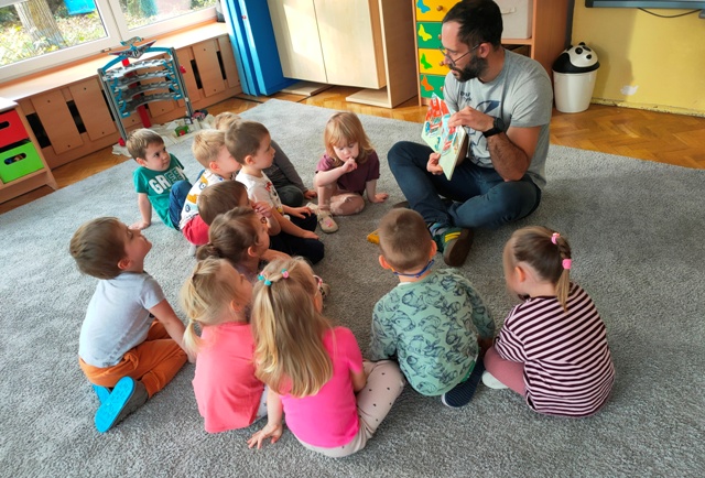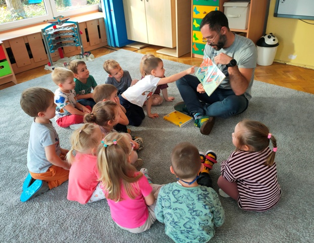 Męski głos wypełnij klasę Motylków. To pan Michał czytał nam bajkę o strażakach, którzy nie tylko gasili pożar, ale także uczestniczyli w ratowaniu ludzi będących uczestnikami kolizji drogowej. Dodatkowo wspólnie przypomnieliśmy sobie numery alarmowe. Poćwiczyliśmy także spostrzegawczość wzrokową , wzbogaciliśmy słownik. Już nie możemy doczekać się kolejnego spotkania.