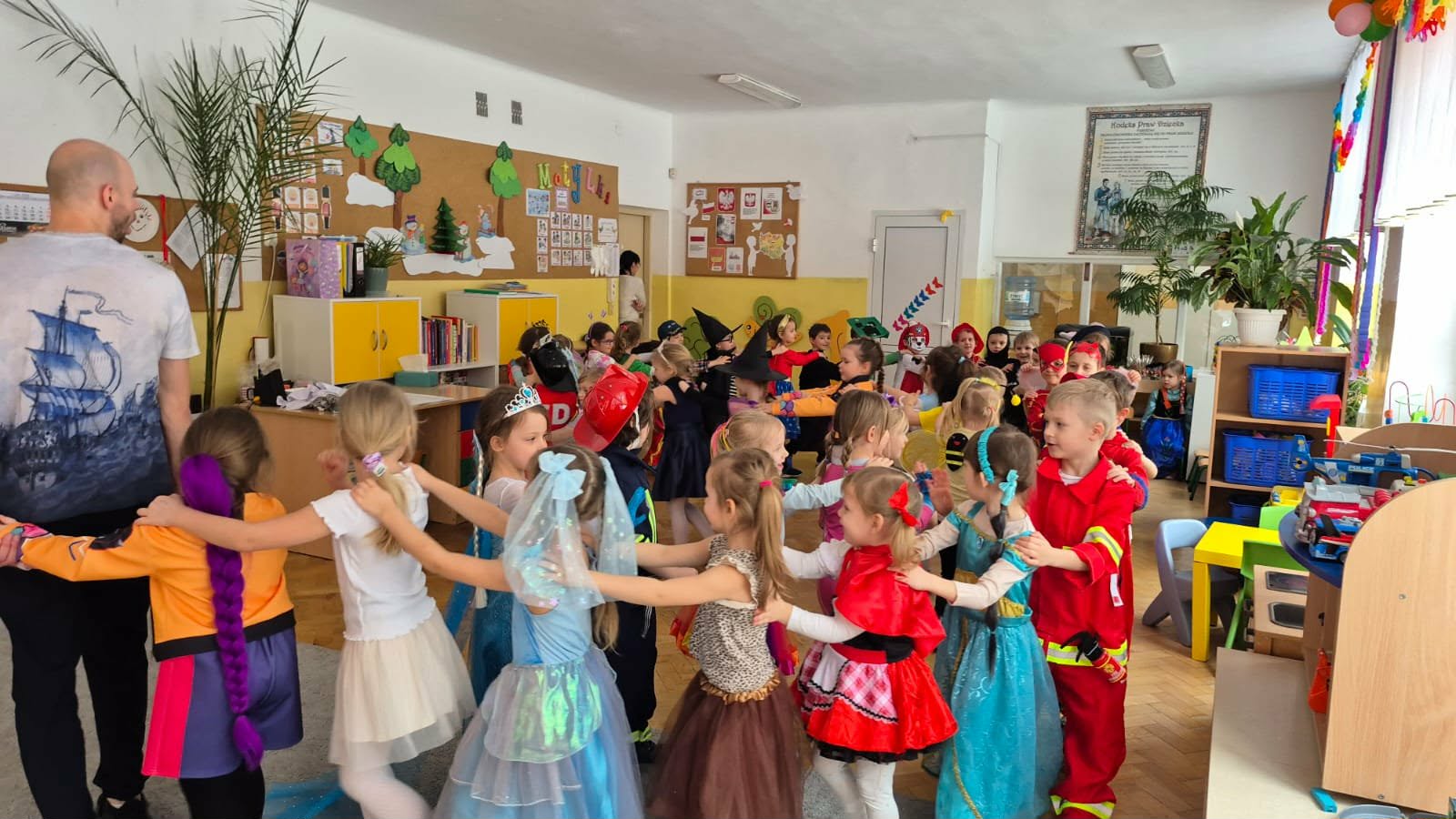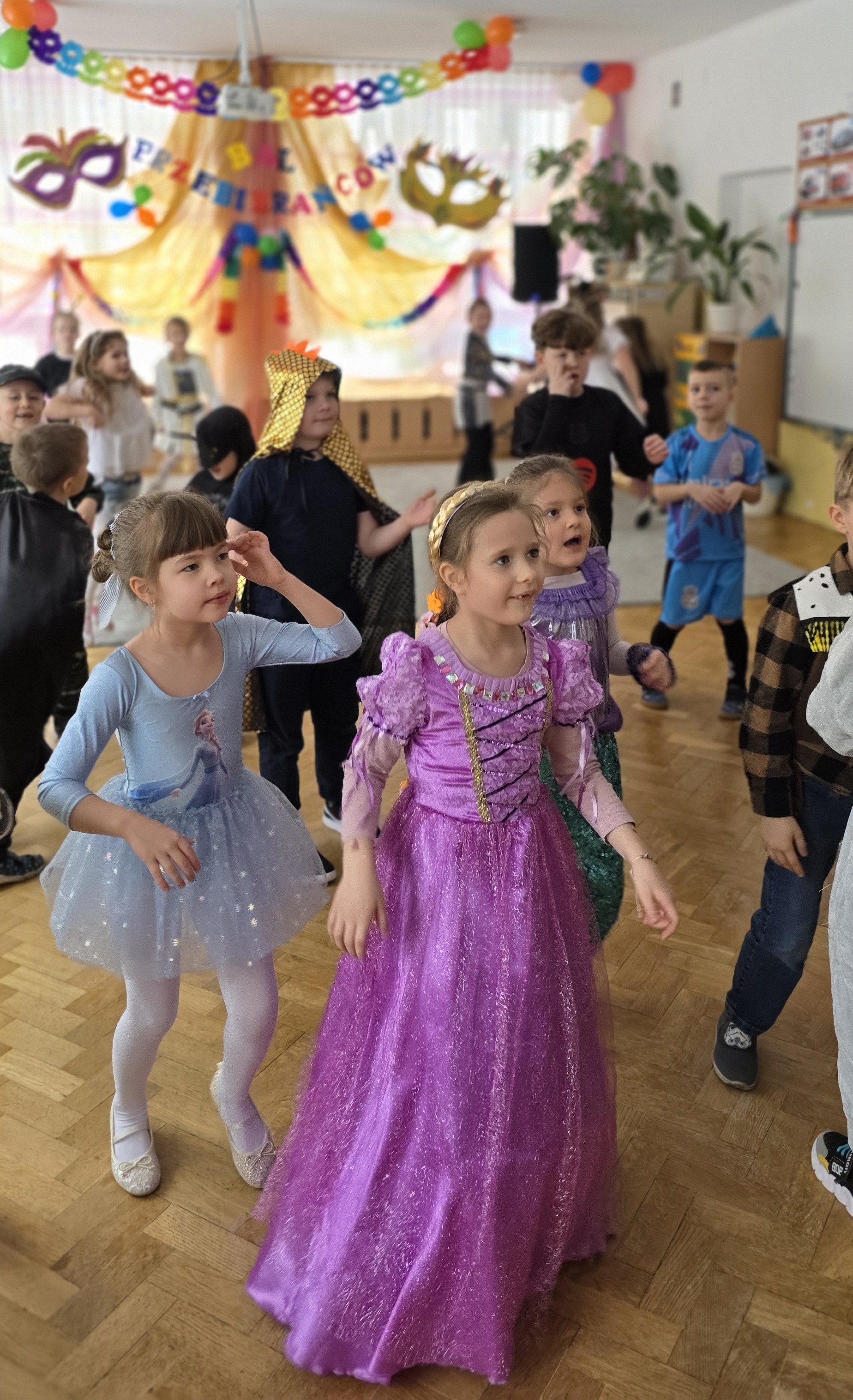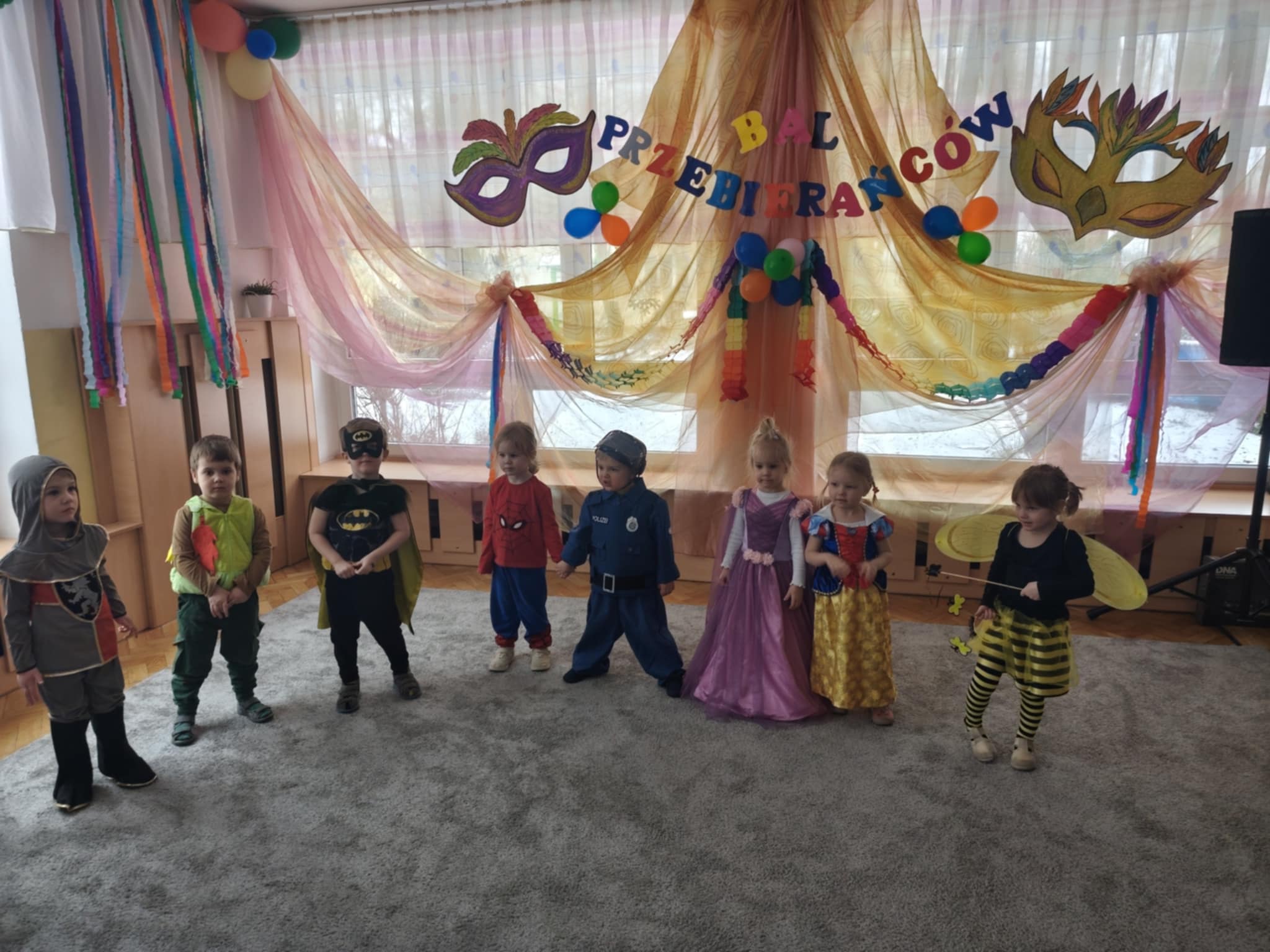 Karnawał to czas zabaw i balów, także dla najmłodszych. Kolorowe stroje, bajeczny wystrój i skoczna muzyka - w takiej atmosferze bawiły się wszystkie dzieci w naszym przedszkolu podczas balu karnawałowego. Tego dnia już od rana w przedszkolu pojawiały się kolorowe postacie - wróżki, księżniczki, motylki, piraci, policjanci, a rozpoznać dzieci było bardzo trudno. Wszyscy świetnie bawili się, uczestnicząc we wspólnych zabawach, a skoczna i rytmiczna muzyka zachęcała do tańca.