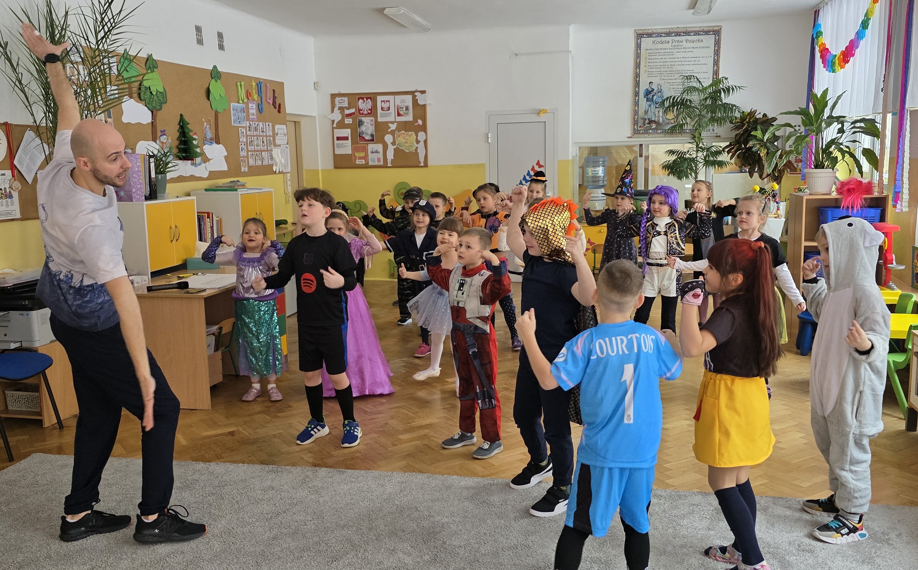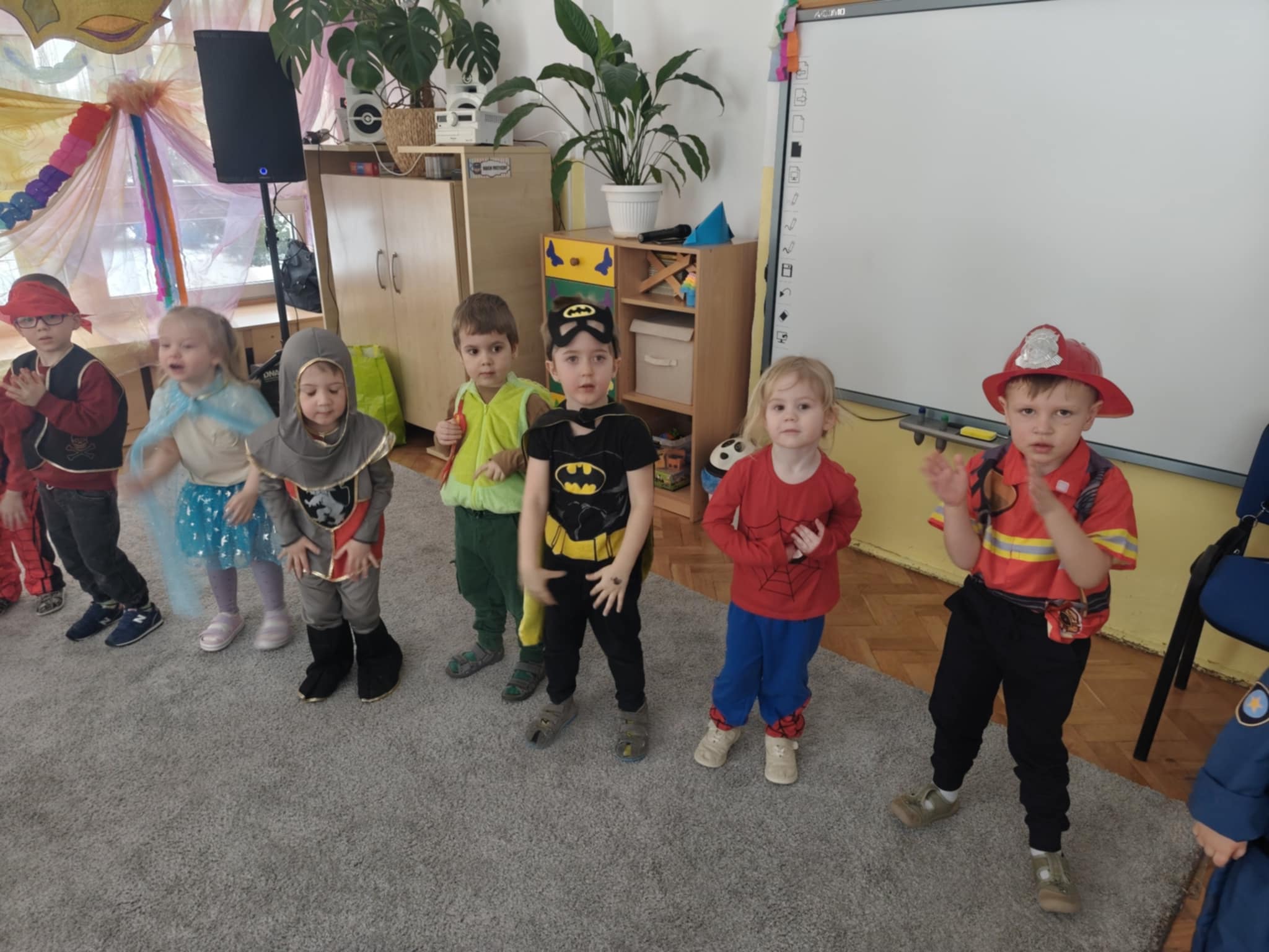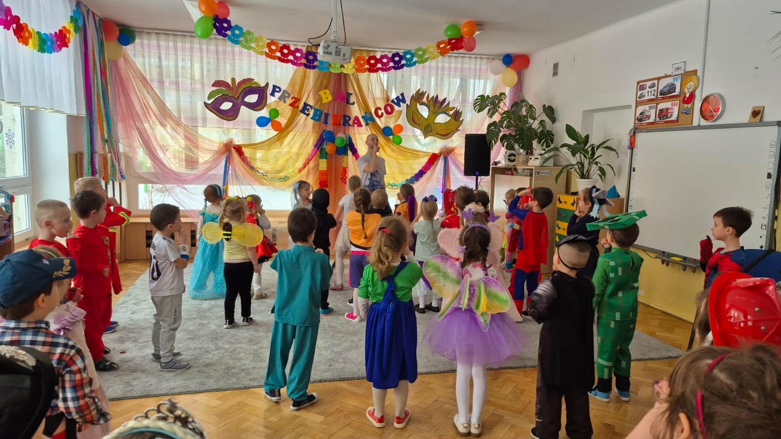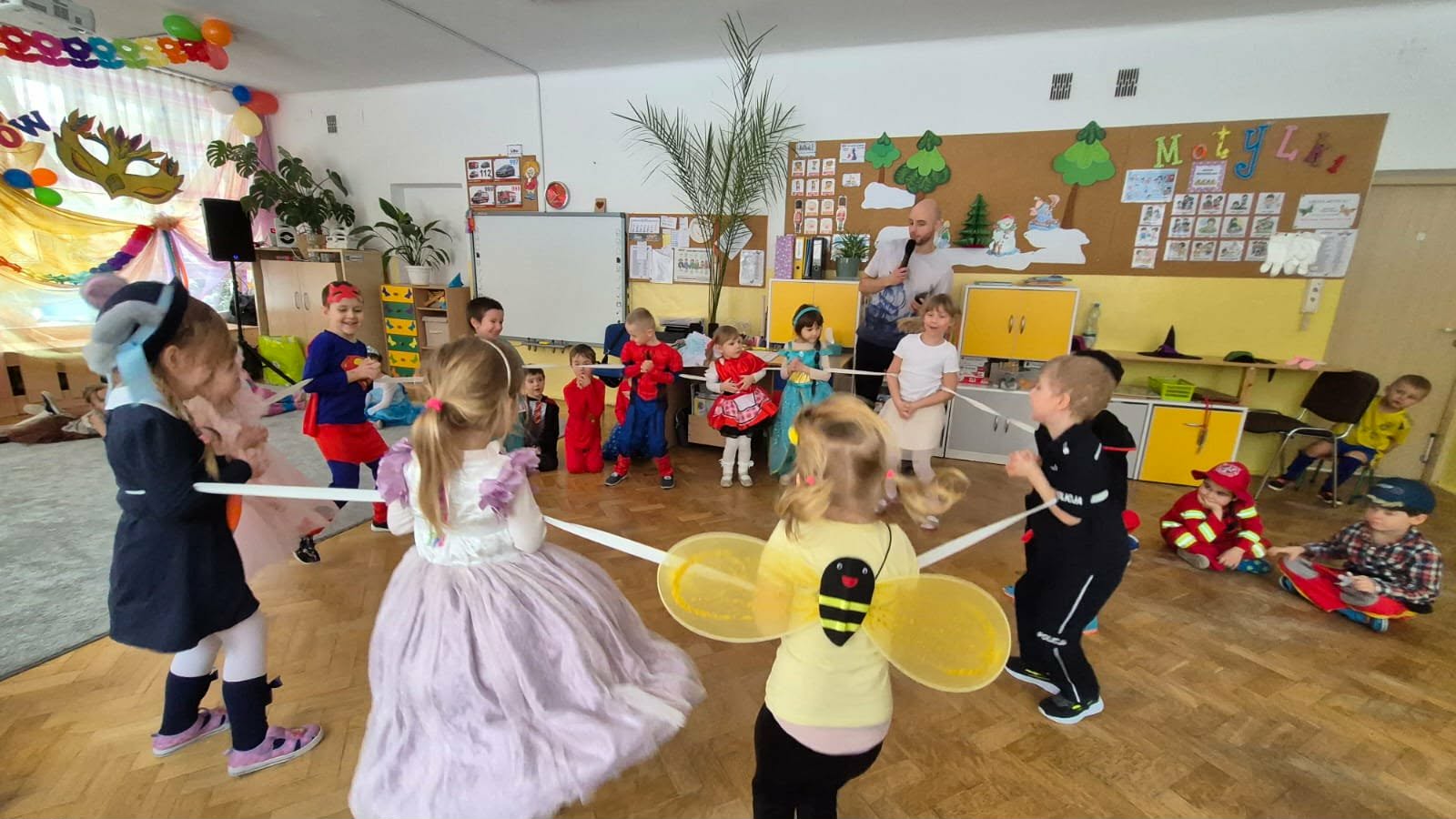 Karnawał to czas zabaw i balów, także dla najmłodszych. Kolorowe stroje, bajeczny wystrój i skoczna muzyka - w takiej atmosferze bawiły się wszystkie dzieci w naszym przedszkolu podczas balu karnawałowego. Tego dnia już od rana w przedszkolu pojawiały się kolorowe postacie - wróżki, księżniczki, motylki, piraci, policjanci, a rozpoznać dzieci było bardzo trudno. Wszyscy świetnie bawili się, uczestnicząc we wspólnych zabawach, a skoczna i rytmiczna muzyka zachęcała do tańca.