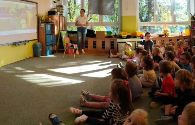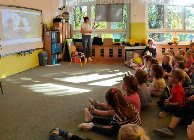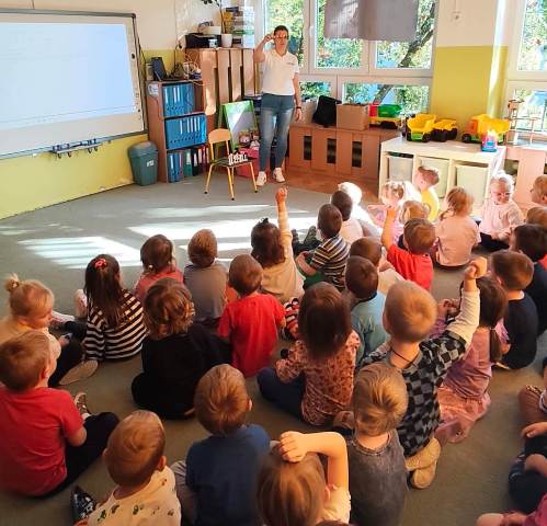 Dzisiaj odwiedziliśmy dzieci z grupy "Pszczółki" i nie po to aby się z nimi pobawić, lecz by wspólnie uczestniczyć w zajęciach edukacyjnych. Uczyliśmy się jak należy zachowywać się na terenach kolejowych, gdzie szukać pomocy w sytuacjach zagrożenia.
