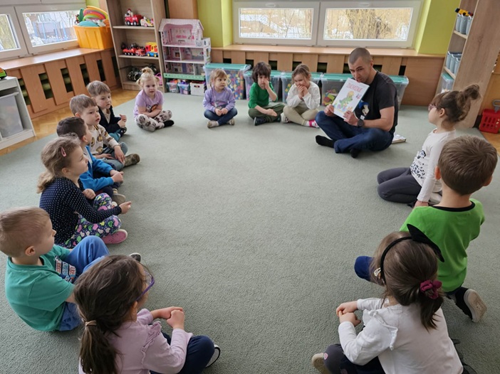 Spotkanie przebiegło w miłej i ciepłej atmosferze, a obecność taty była dla dzieci wyjątkowym i radosnym przeżyciem. Wspólne czytanie pokazało, jak ważną rolę w życiu dziecka odgrywa kontakt z książką oraz współpraca przedszkola z rodzicami.