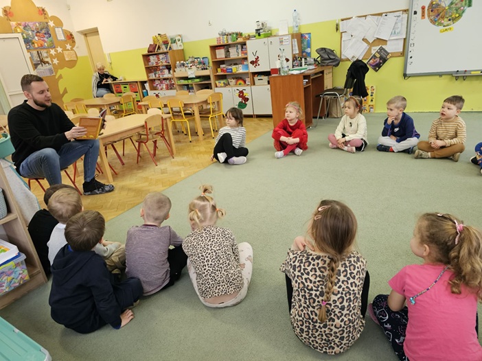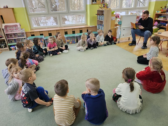 Czytanie rodzica w grupie przedszkolnej w ramach akcji „Cała Polska czyta dzieciom” to wyjątkowe wydarzenie, które łączy dzieci, rodziców i nauczycieli wokół wspólnej idei promowania czytelnictwa. Podczas spotkania zaproszony rodzic odwiedza grupę przedszkolną i w przyjaznej, spokojnej atmosferze czyta dzieciom wybraną książkę – najczęściej bajkę, opowiadanie lub wiersze dostosowane do wieku przedszkolaków. Dzieci z zainteresowaniem słuchają czytanego tekstu, oglądają ilustracje, zadają pytania i dzielą się swoimi spostrzeżeniami. Często czytaniu towarzyszy krótka rozmowa na temat treści książki, bohaterów oraz wartości, jakie z niej płyną, takich jak przyjaźń, dobro, empatia czy szacunek. Akcja „Cała Polska czyta dzieciom” w przedszkolu sprzyja także wzmacnianiu współpracy z rodzicami oraz integracji środowiska przedszkolnego. Jest to wartościowa forma spędzania czasu, która dostarcza dzieciom radości, inspiracji i pozytywnych emocji.