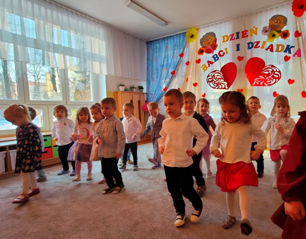 Dziś w naszej grupie od samego rana panowało wielkie poruszenie. Czekaliśmy z niecierpliwością na nasze kochane babcie i dziadków. To im dedykowaliśmy okolicznościowe wiersze i piosenki. Wręczyliśmy im także wykonane przez nas upominki. Były łzy, uśmiechy i bardzo dużo całusków- 100 lat w zdrowiu kochani !!!