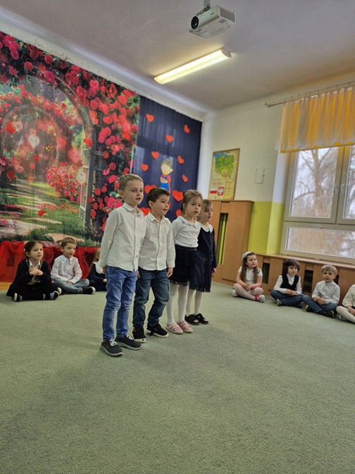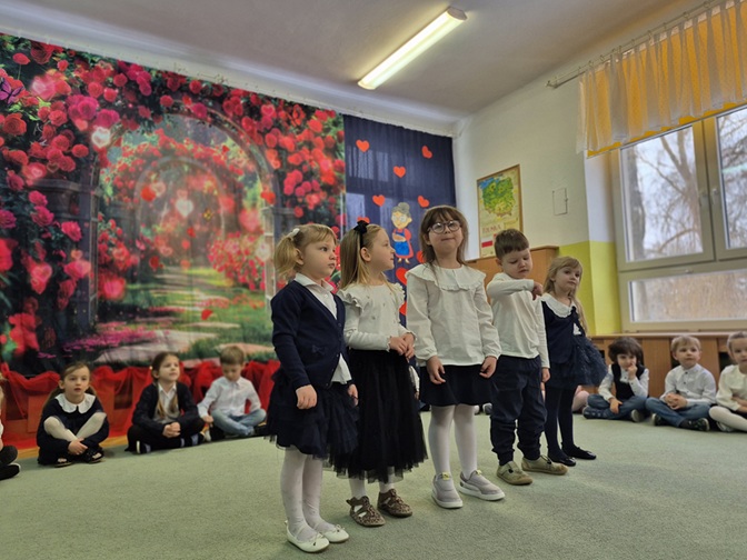 Przedszkolaki zaprezentowały wierszyki, piosenki oraz krótkie inscenizacje, które zostały nagrodzone gromkimi brawami. Mali artyści z dumą występowali przed swoimi bliskimi, a na twarzach babć i dziadków widać było wzruszenie i radość. Po części artystycznej dzieci wręczyły własnoręcznie wykonane upominki oraz złożyły serdeczne życzenia.