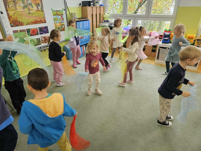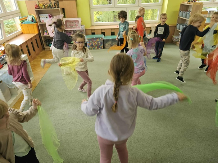 Improwizacje ruchowe z chustami przy muzyce klasycznej