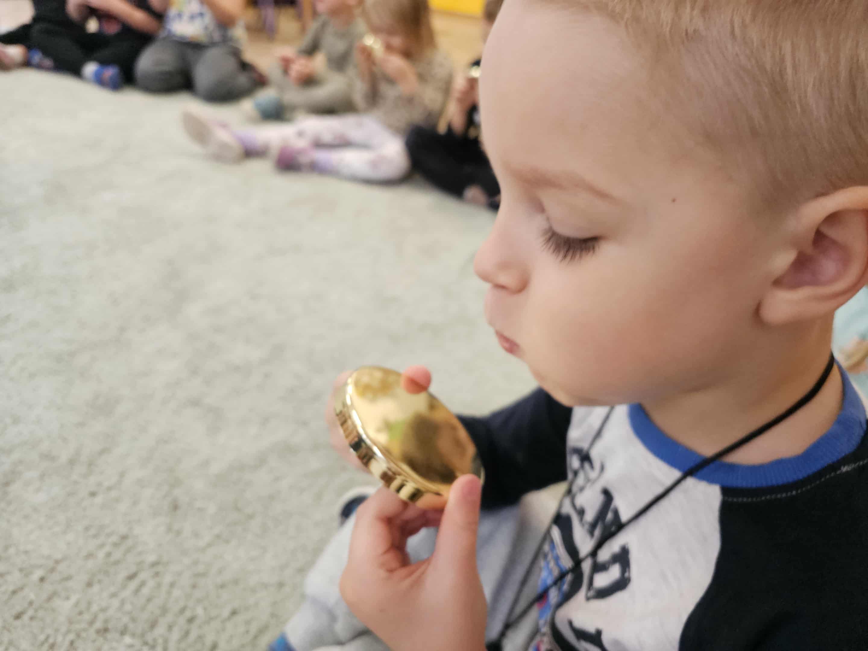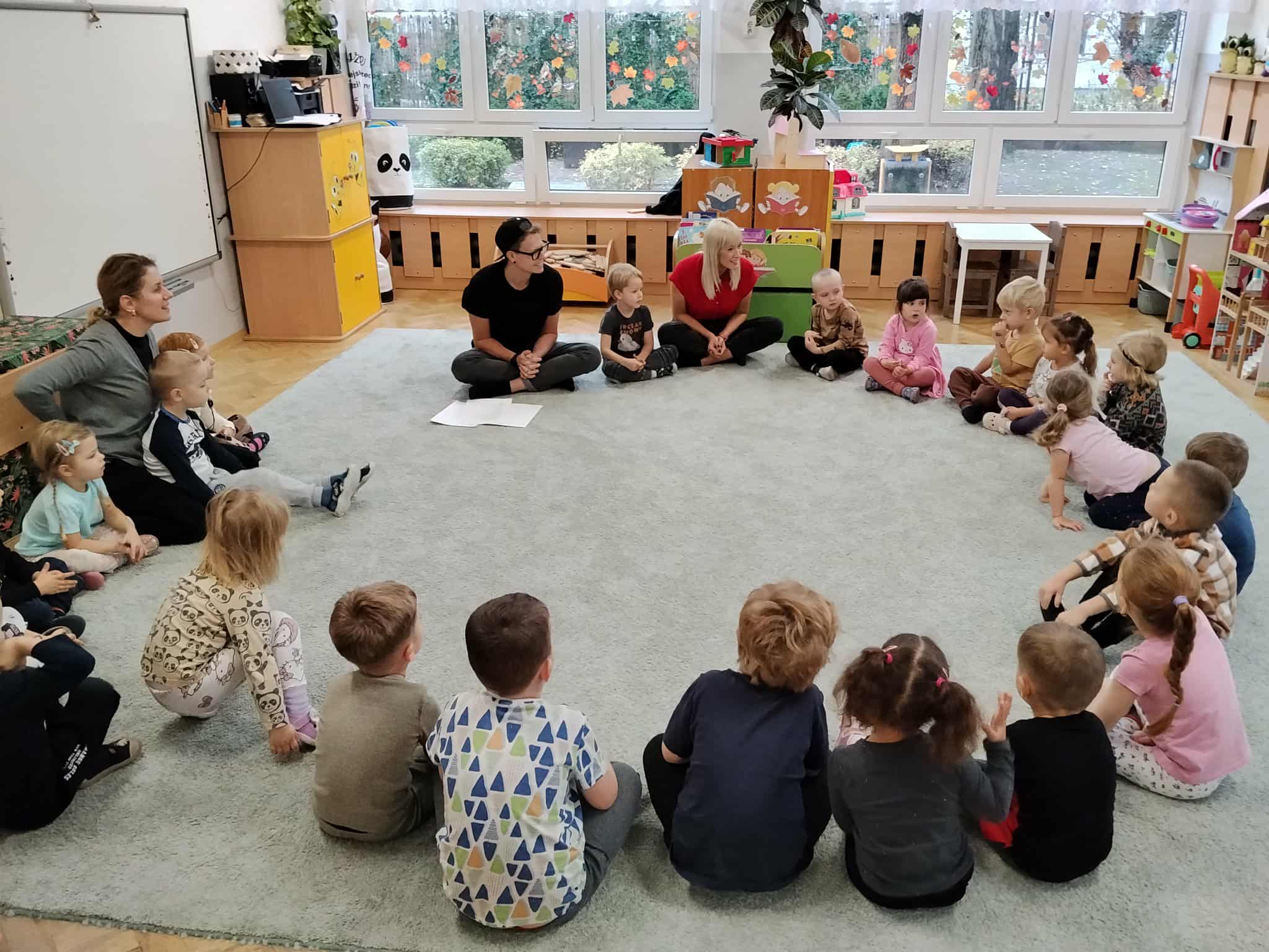 Oddychamy spokojnie…Dziś nasze przedszkolaki wzięły udział w warsztatach prowadzonych przez Stowarzyszenie Inny Rytm. Poprzez zabawę i ćwiczenia dzieci odkrywały, jak oddech pomaga się uspokoić, wyciszyć i poczuć lepiej w swoim ciele.