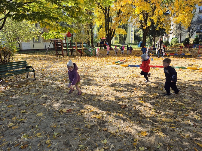 Dzieci z radością korzystają z jesiennej pogody, biorąc udział w różnorodnych aktywnościach na dworze. Zbieramy kolorowe liście i układamy z nich barwne kompozycje, tworzymy "liściowe bukiety", a także wspólnie uczymy się rozpoznawać drzewa po ich liściach i owocach. To doskonała okazja, by poznawać przyrodę wszystkimi zmysłami!