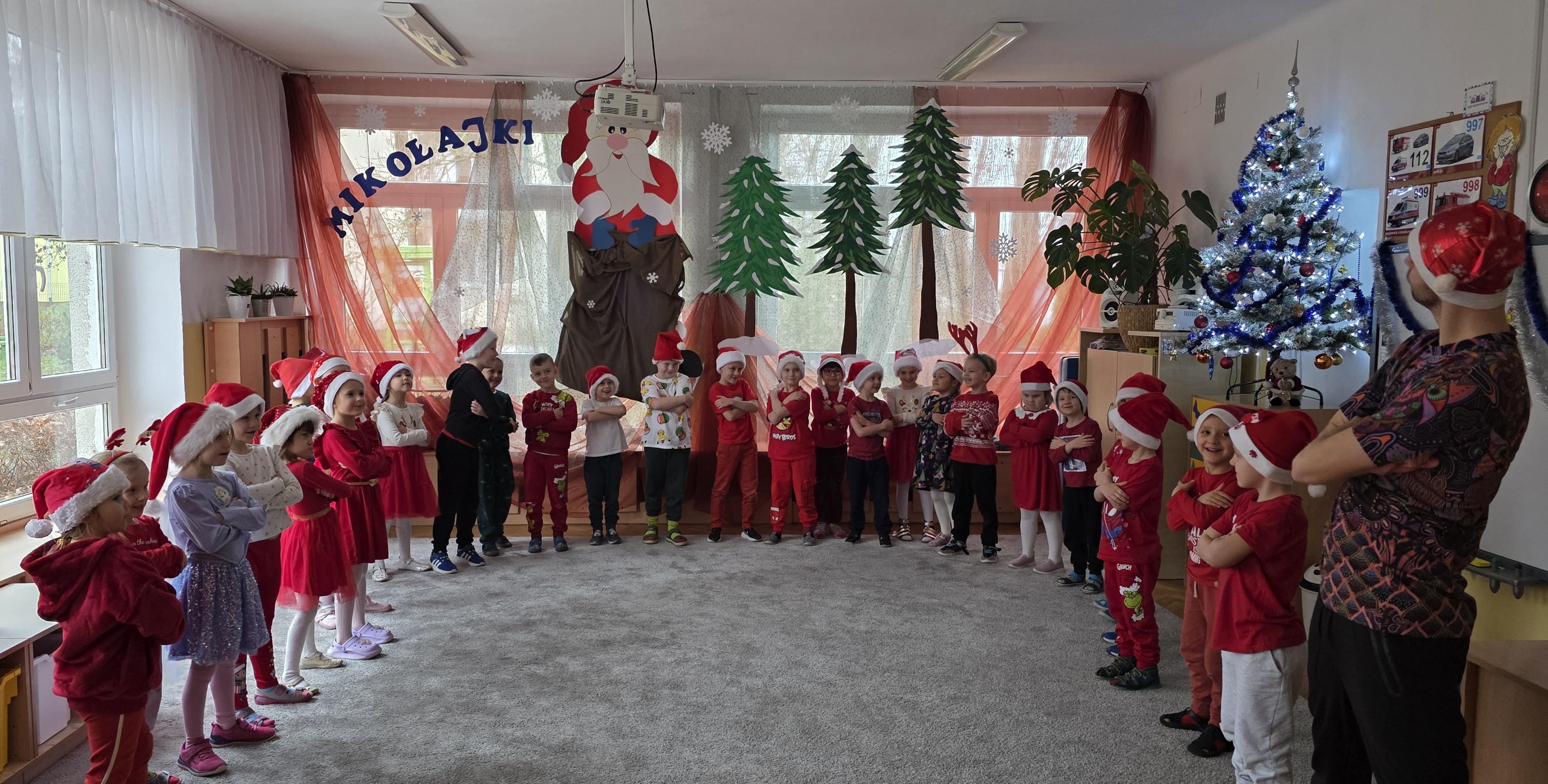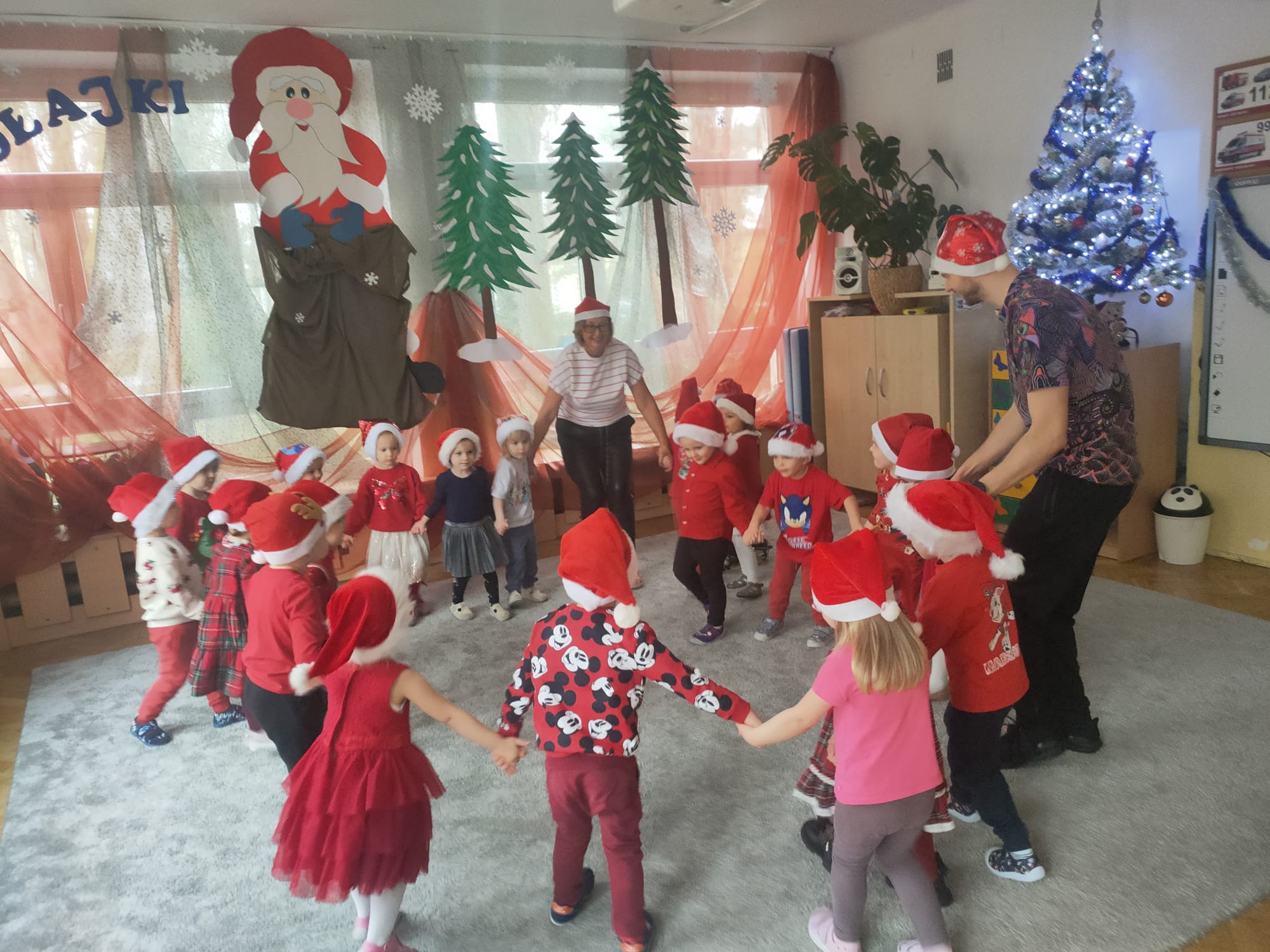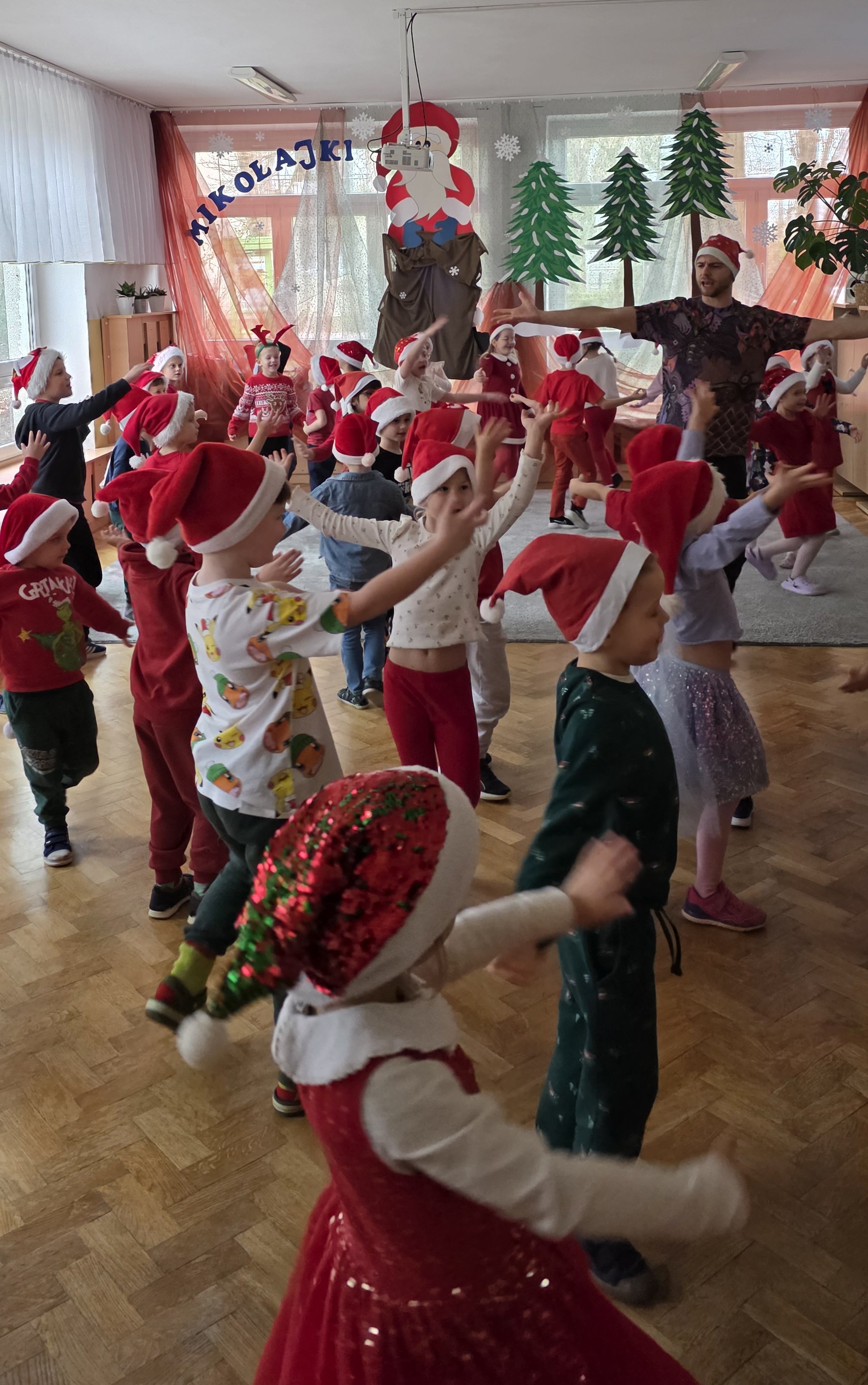 Zgodnie z tradycją 5 grudnia uroczyście obchodziliśmy w przedszkolu mikołajkowe święto. W tym dniu wszystkie dzieci zamieniły się w pomocników Mikołaja i przyszły do przedszkola w czerwonych strojach lub mikołajkowych czapeczkach. Radości nie było końca - wspólnie z Panem Darkiem bawiliśmy się przy ulubionych piosenkach z repertuaru zimowo-świątecznego. Zwieńczeniem tego radosnego dnia były drobne upominki.