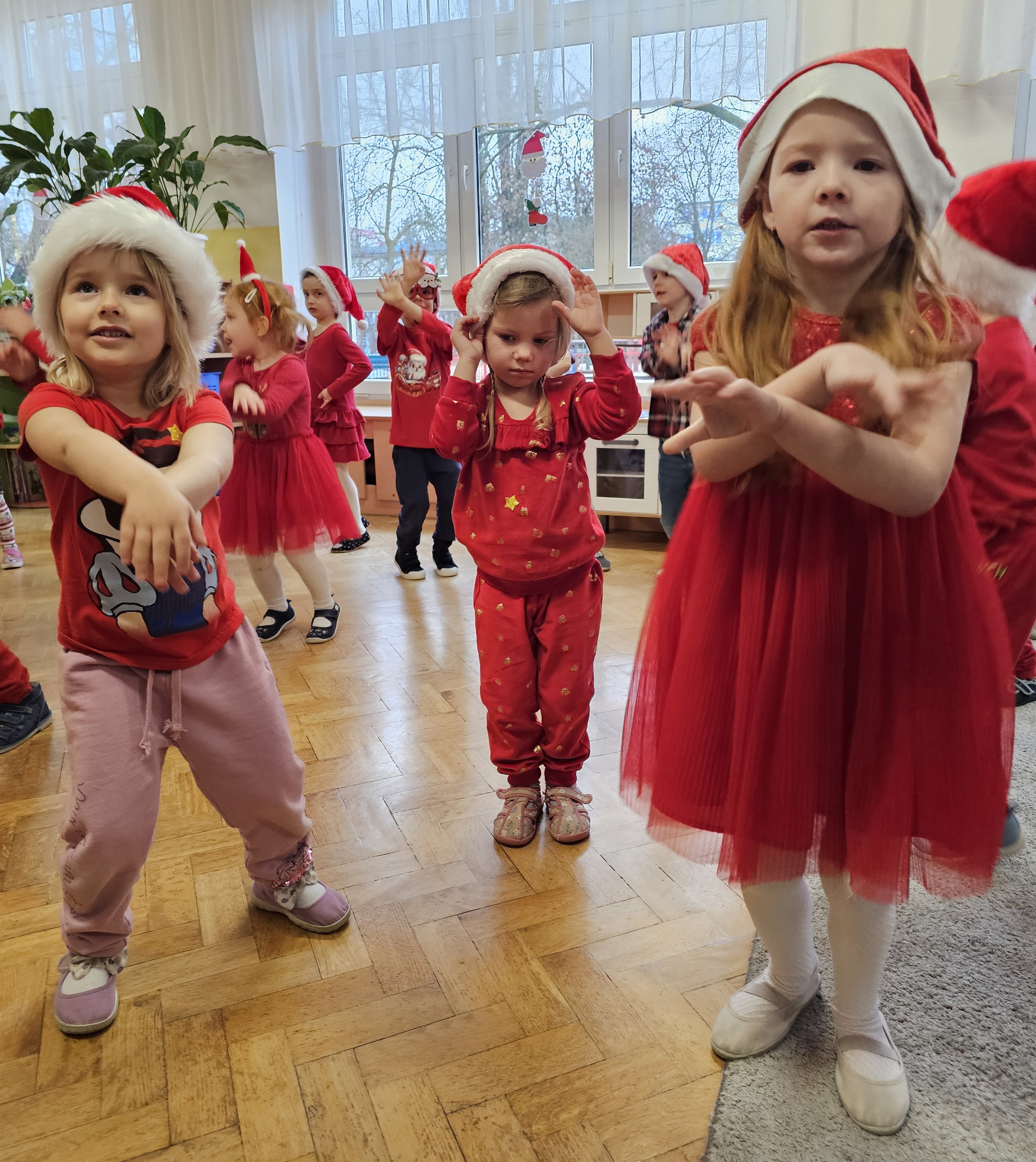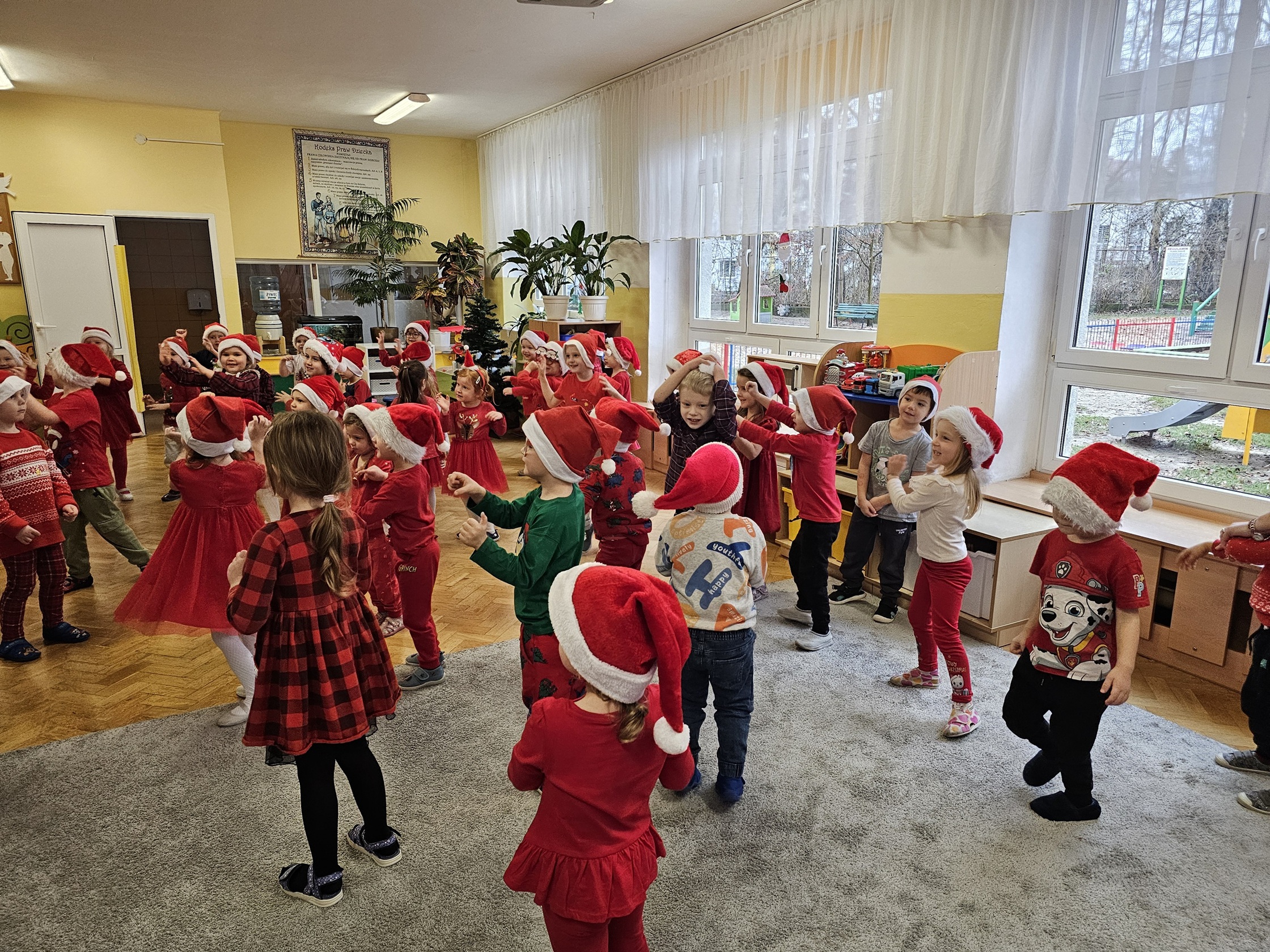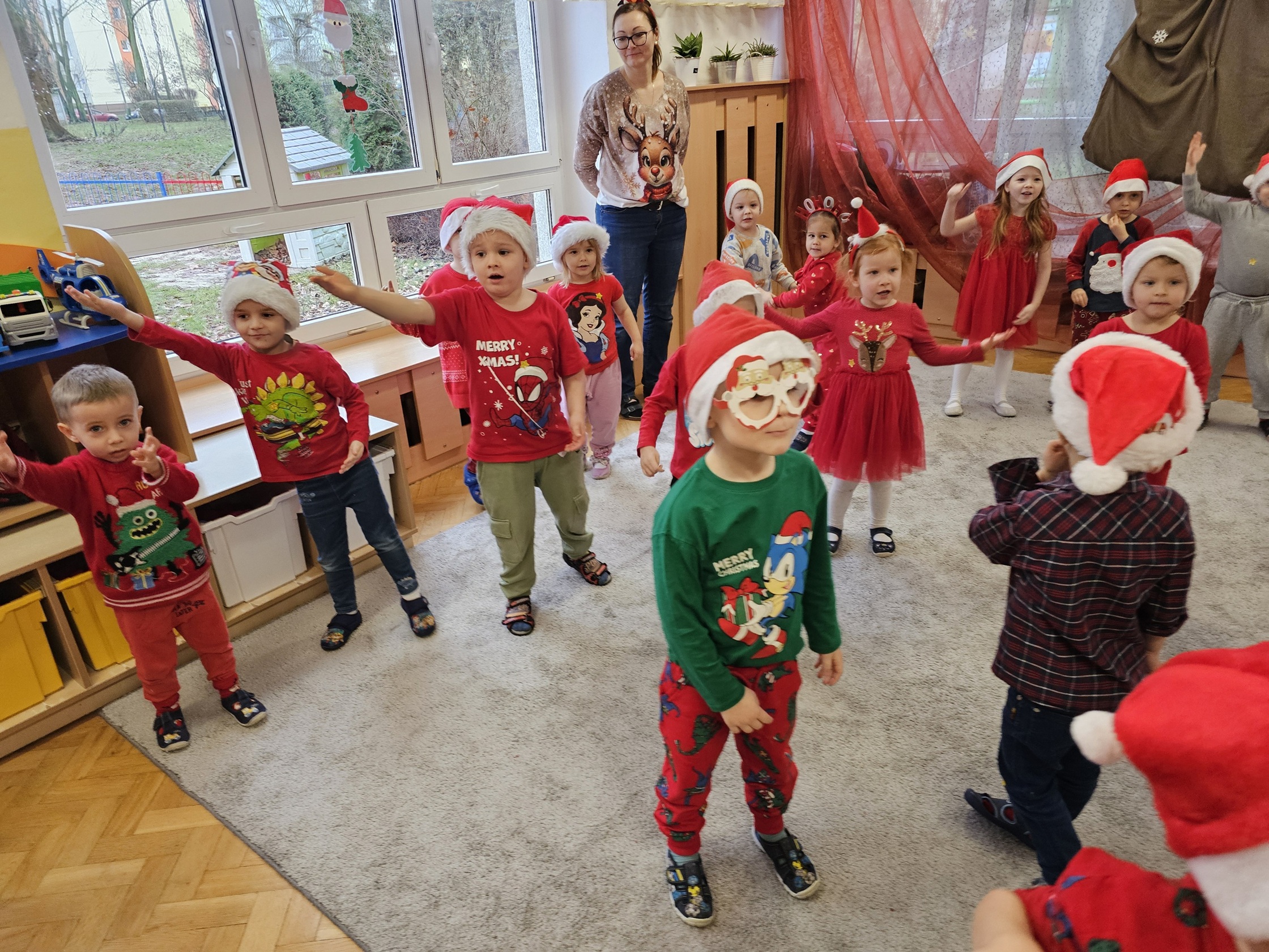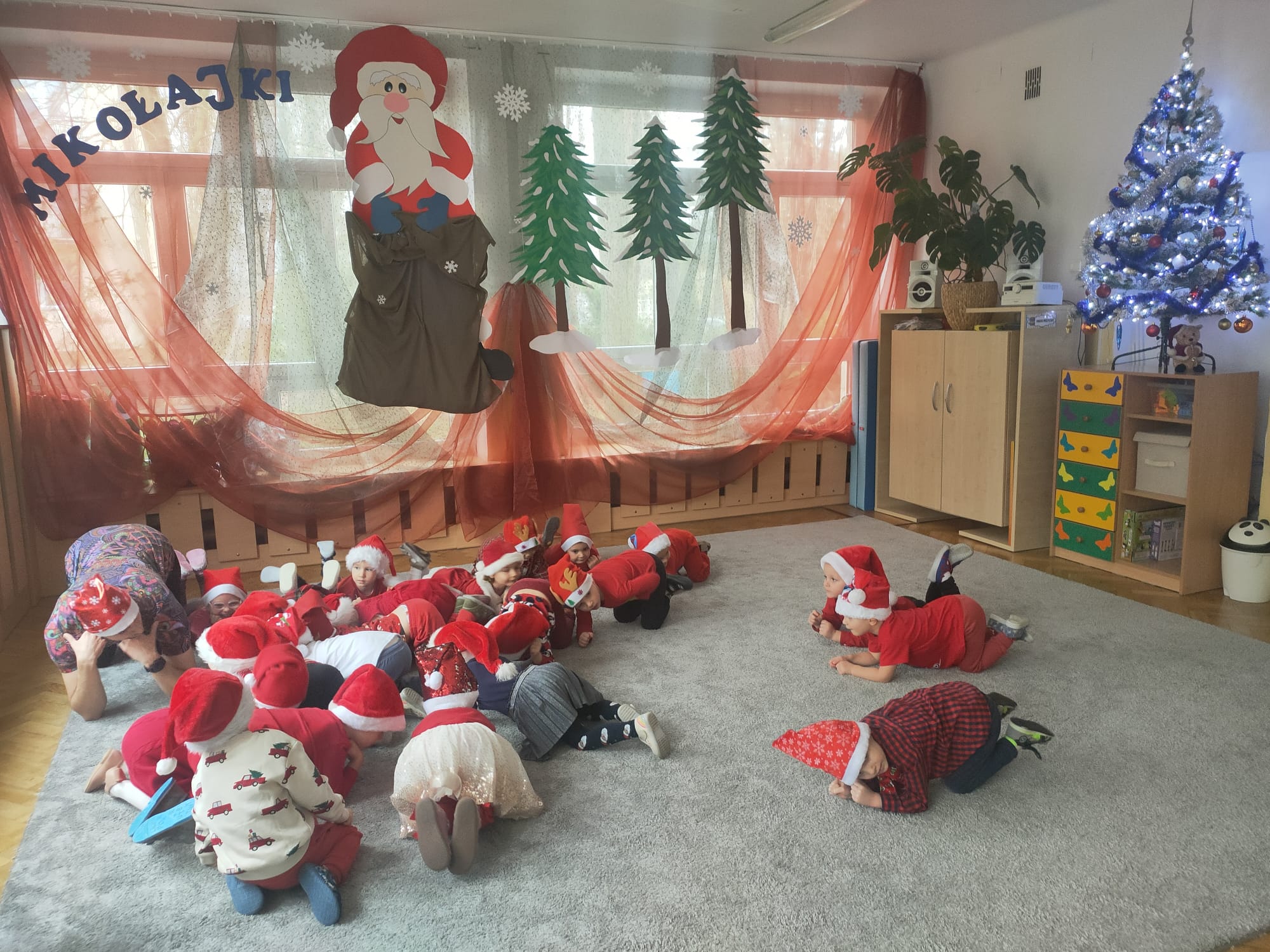 Zgodnie z tradycją 5 grudnia uroczyście obchodziliśmy w przedszkolu mikołajkowe święto. W tym dniu wszystkie dzieci zamieniły się w pomocników Mikołaja i przyszły do przedszkola w czerwonych strojach lub mikołajkowych czapeczkach. Radości nie było końca - wspólnie z Panem Darkiem bawiliśmy się przy ulubionych piosenkach z repertuaru zimowo-świątecznego. Zwieńczeniem tego radosnego dnia były drobne upominki.