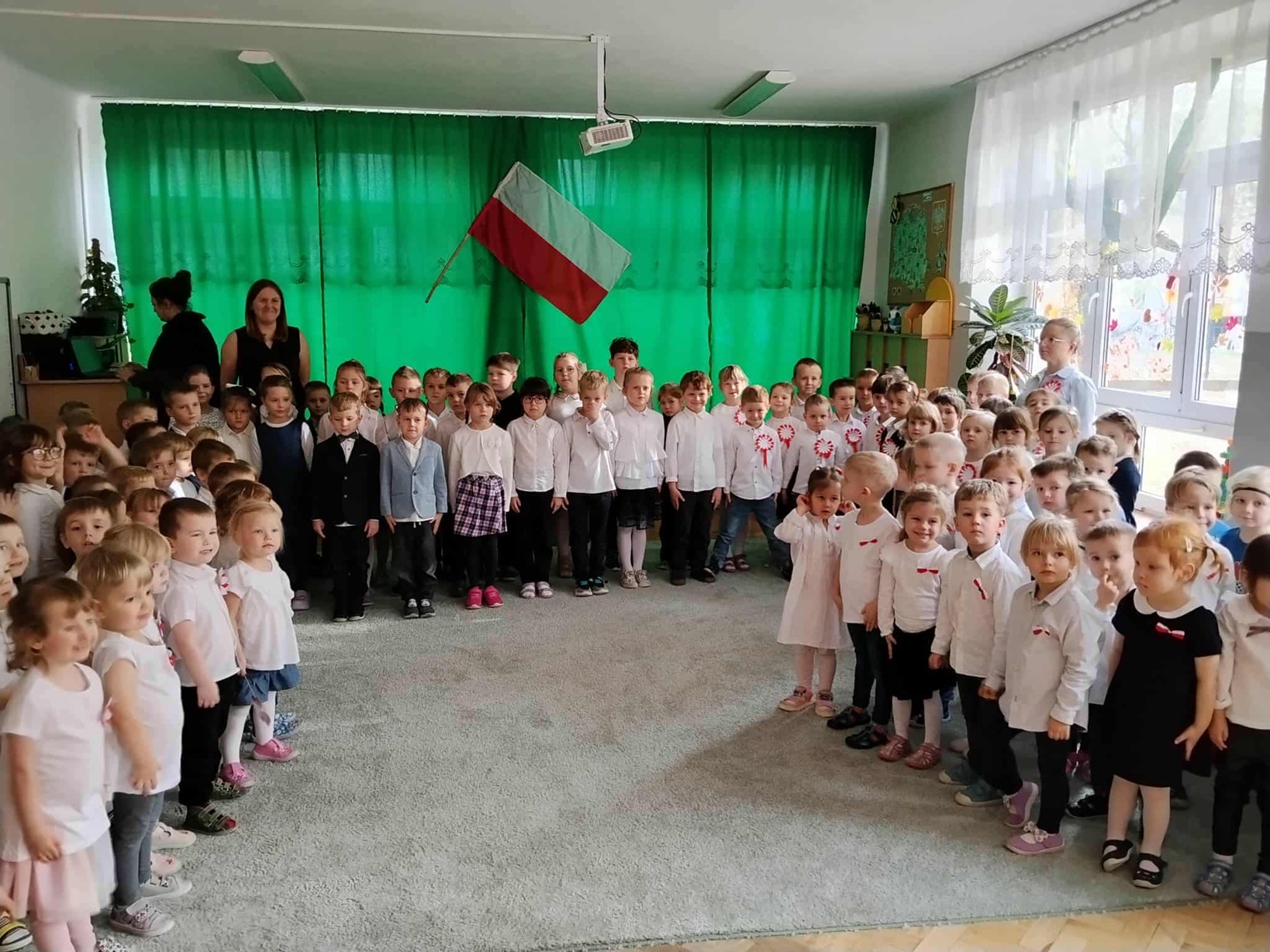 W dniu dzisiejszym świętowaliśmy Narodowe Święto Niepodległości. Najpierw uczestniczyliśmy w warsztatach prowadzonych przez przedstawiciela Muzeum Tradycji Niepodległościowych, a następnie odśpiewaliśmy hymn państwowy "Mazurek Dąbrowskiego" w towarzystwie młodszych kolegów i koleżanek.