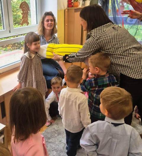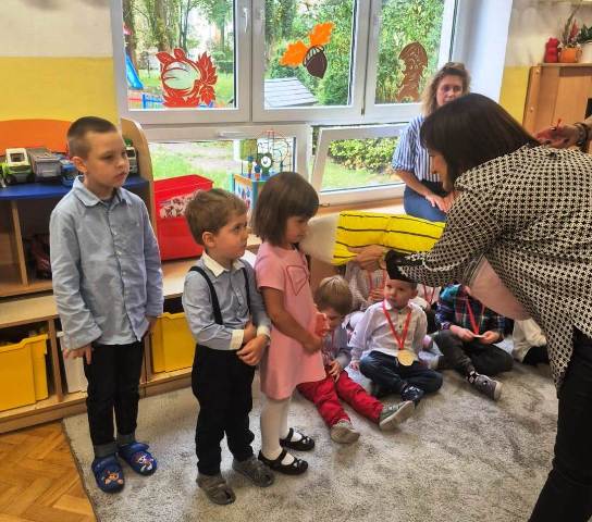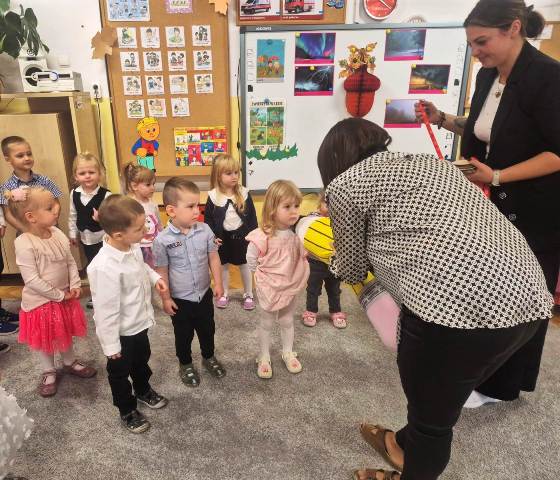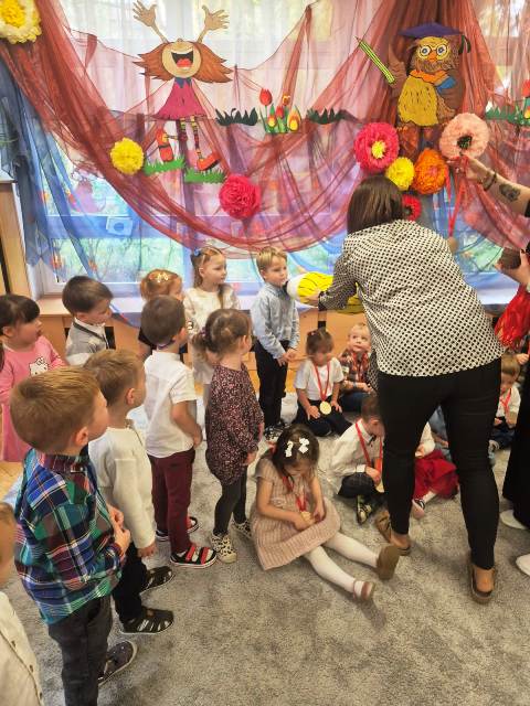 Wszyscy odświętnie ubrani już od samego rana oczekiwaliśmy na ten ważny moment. Najpierw w obecności zaproszonych gości - dzieci ze starszych grup, zaprezentowaliśmy przygotowany program artystyczny, by później złożyć uroczystą przysięgę i z rąk Pani Dyrektor przyjąć pasowanie na przedszkolaka. Od dzisiaj przynależymy do wielkiej przedszkolnej rodziny, a naszym drugim domem będzie Przedszkole Miejskie Nr 124.