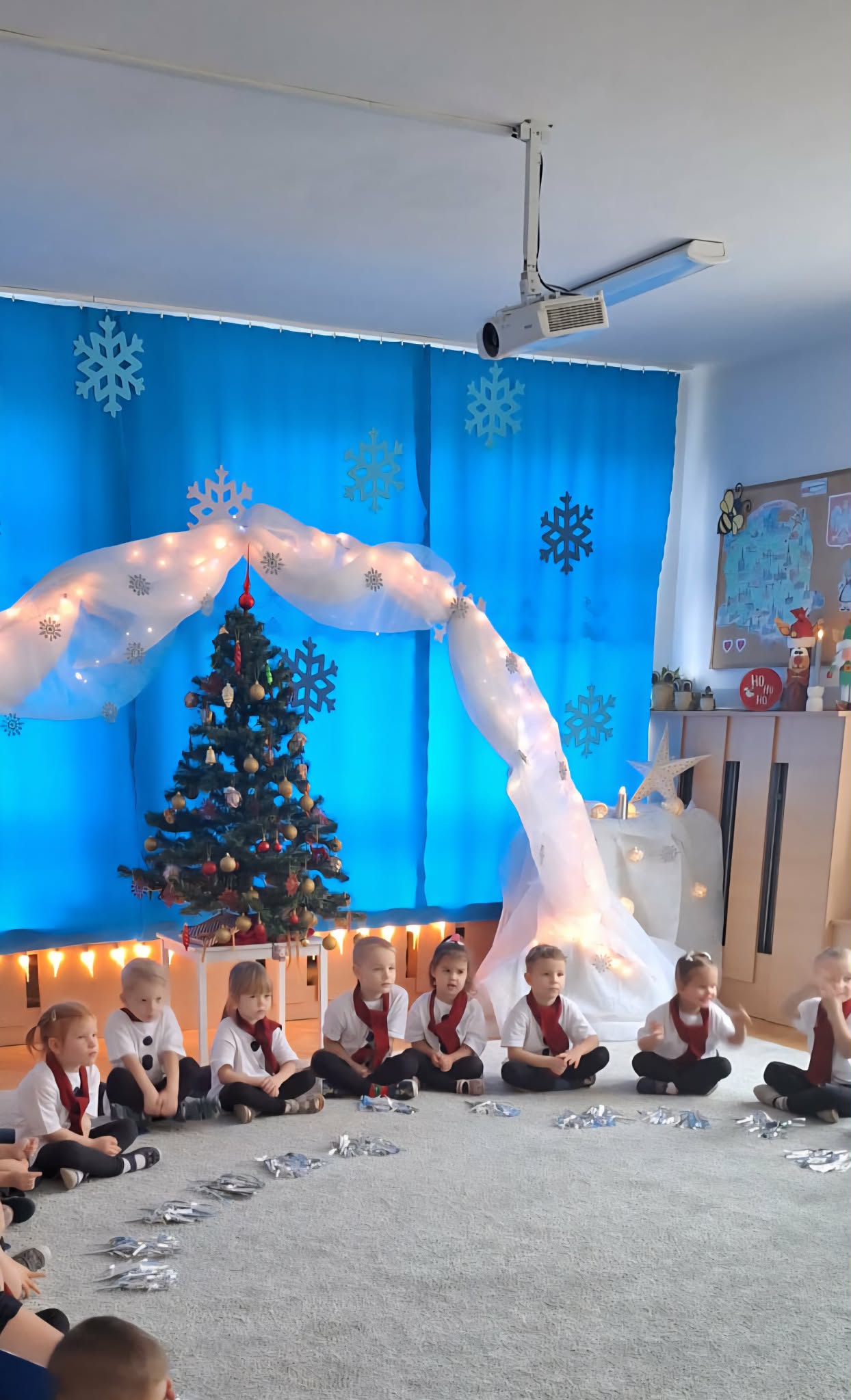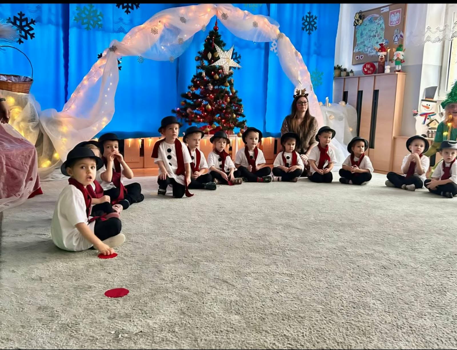 Podczas naszego przedstawienia gwiazdkowego dzieci zabrały rodziców do niezwykłej krainy bałwanów i śnieżnych opowieści. Były piosenki, wierszyki, taniec i wiele wzruszeń – a mali artyści z dumą prezentowali swoje role w zimowej scenerii. Dziękujemy za obecność, brawa i ciepłą atmosferę, która sprawiła, że ta zimowa kraina stała się naprawdę magiczna.
