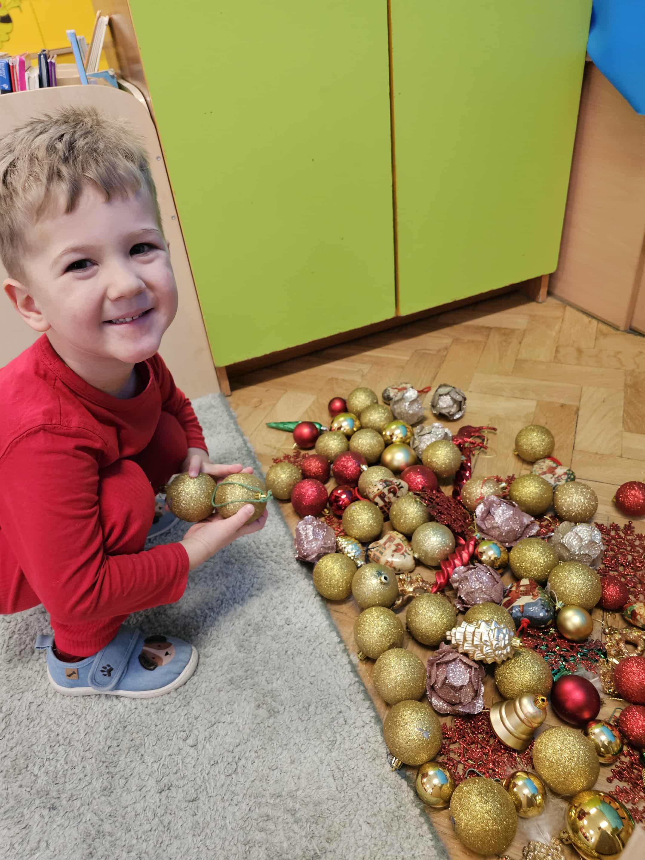 W naszej grupie trwa wyjątkowy, pełen radości czas przygotowań do Świąt Bożego Narodzenia. Wspólnie ubieraliśmy choinkę, która od tej pory rozświetla naszą salę i wprowadza świąteczną atmosferę. Każdego dnia dzieci z niecierpliwością odliczają czas do świąt, ucinając brodę Mikołaja - kalendarza adwentowego. Nie brakuje również chwil wyciszenia – podczas wspólnych ćwiczeń relaksacyjnych (Yogi) uczyliśmy się spokoju, uważności i odpoczynku. Kulminacyjnym momentem radosnych przygotowań był na pewno Bal Mikołajkowy, pełen muzyki, tańca, uśmiechu i dziecięcej radości.