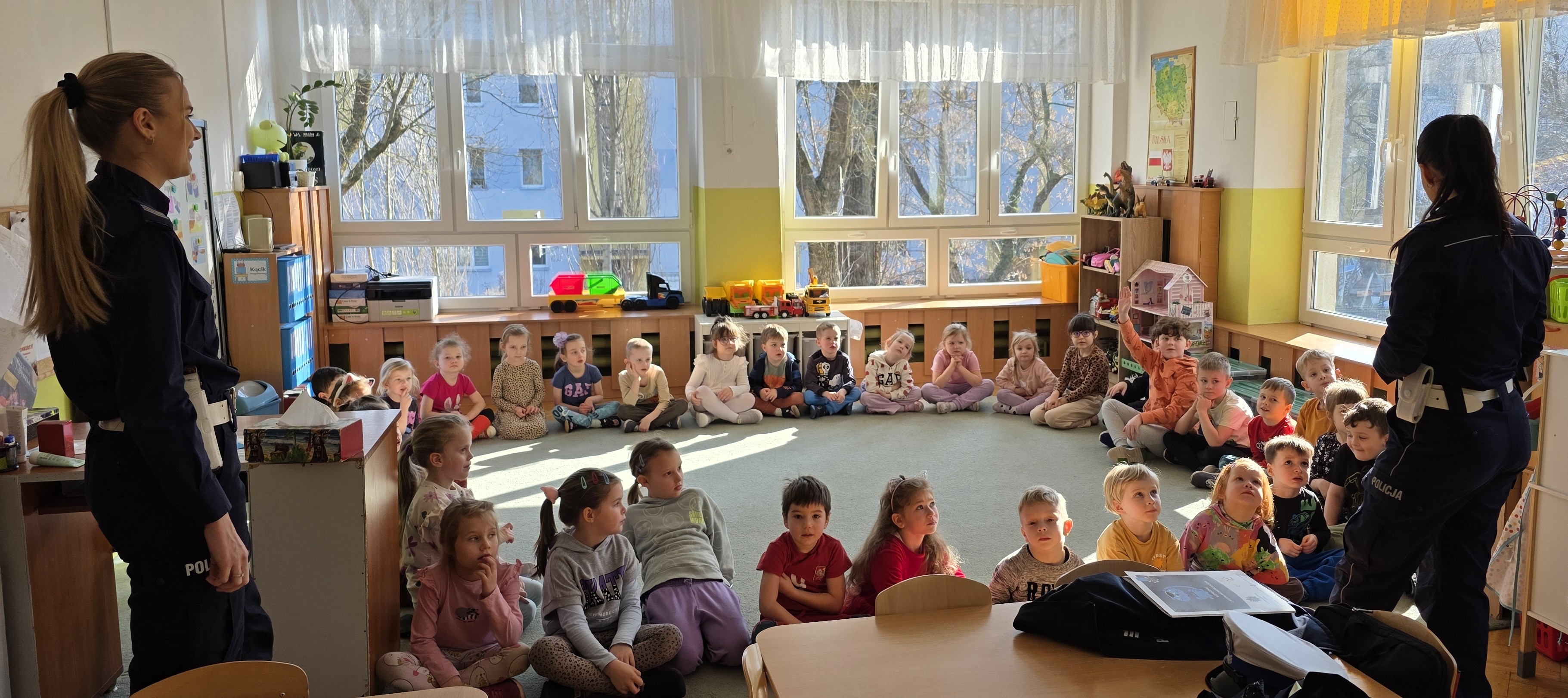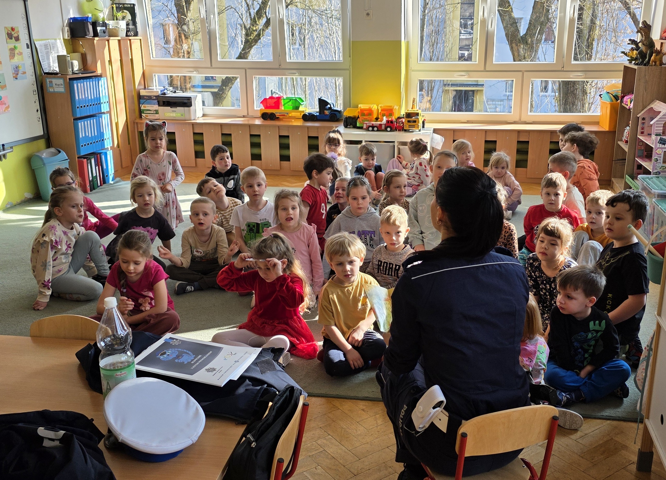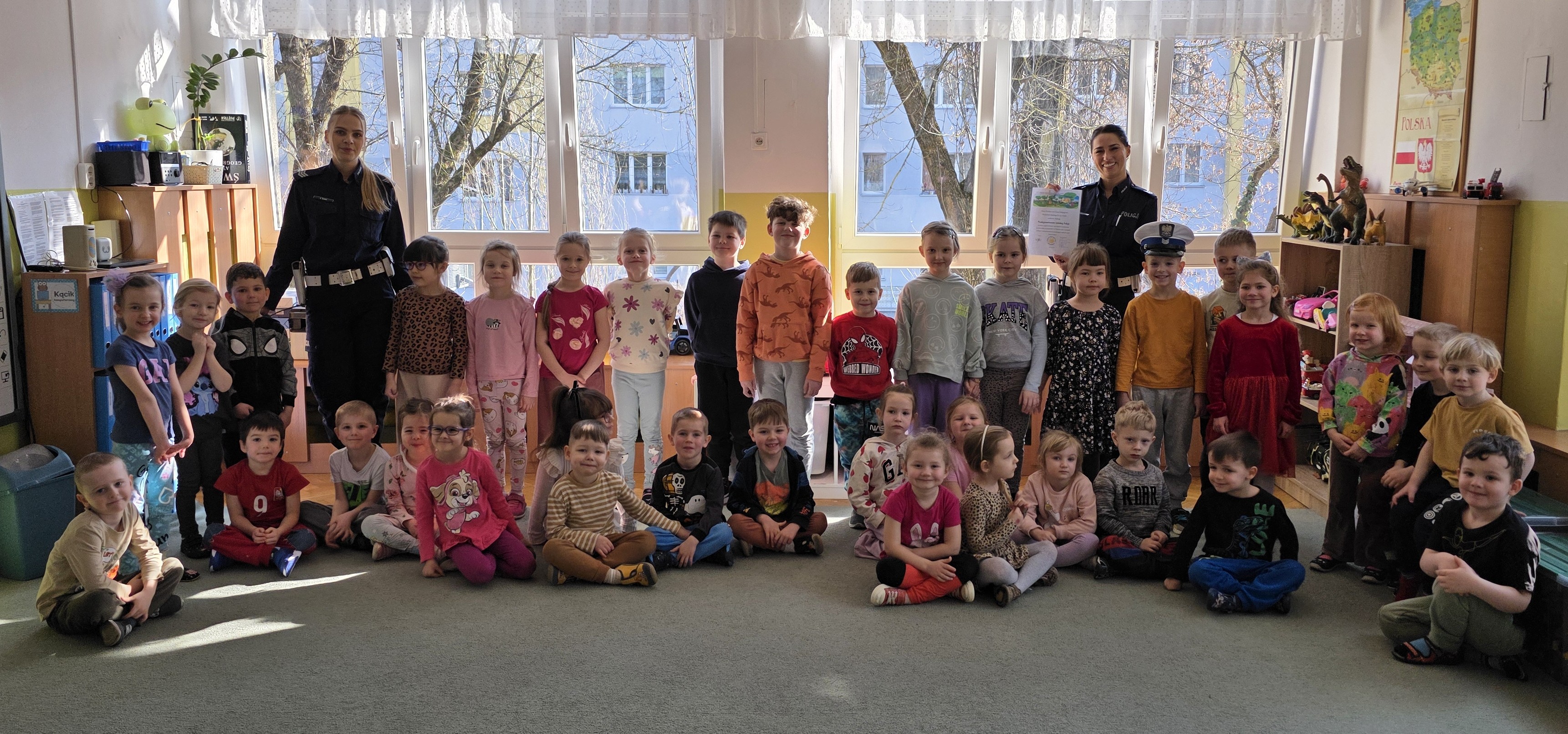 W naszym przedszkolu kładziemy duży nacisk na edukację związaną z bezpieczeństwem, dlatego regularnie naszych przedszkolaków odwiedzają funkcjonariusze łódzkiej Policji. Przypominają o zachowaniu bezpieczeństwa na drogach oraz jak prawidłowo zachować się, gdy zaczepi nas ktoś obcy i jak uniknąć ugryzienia przez psa.
