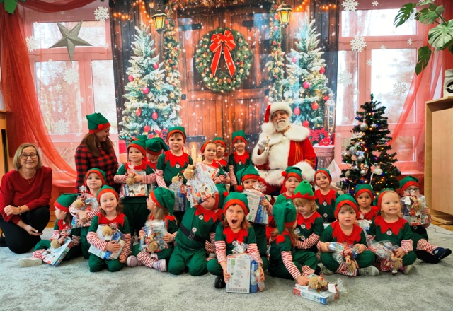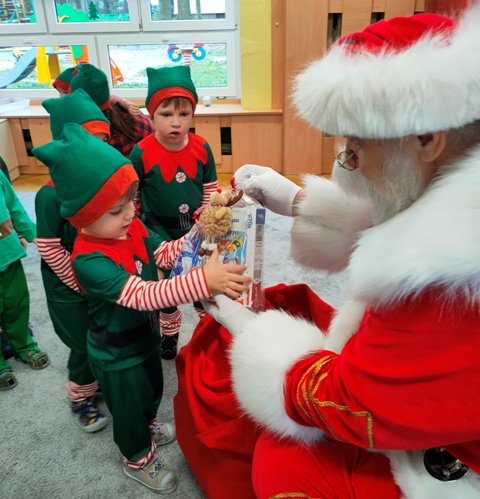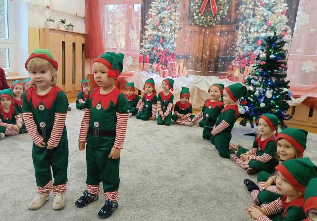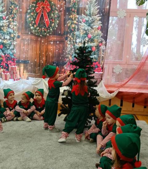 Już od połowy listopada rozpoczęły się wielkie przygotowania do uroczystości choinkowej- uczyliśmy się piosenek, wierszyków oraz tańca. I nastał ten dzień- wszyscy przebrani w stroje elfów mogliśmy zaprezentować swoje umiejętności wokalno- taneczne na uroczystości przed naszymi Rodzicami, oraz wyczekiwanym gościem- Mikołejem. I wiecie co- nikt z Nas nie dostał rózgi- przecież dzieci zawsze są grzeczne...