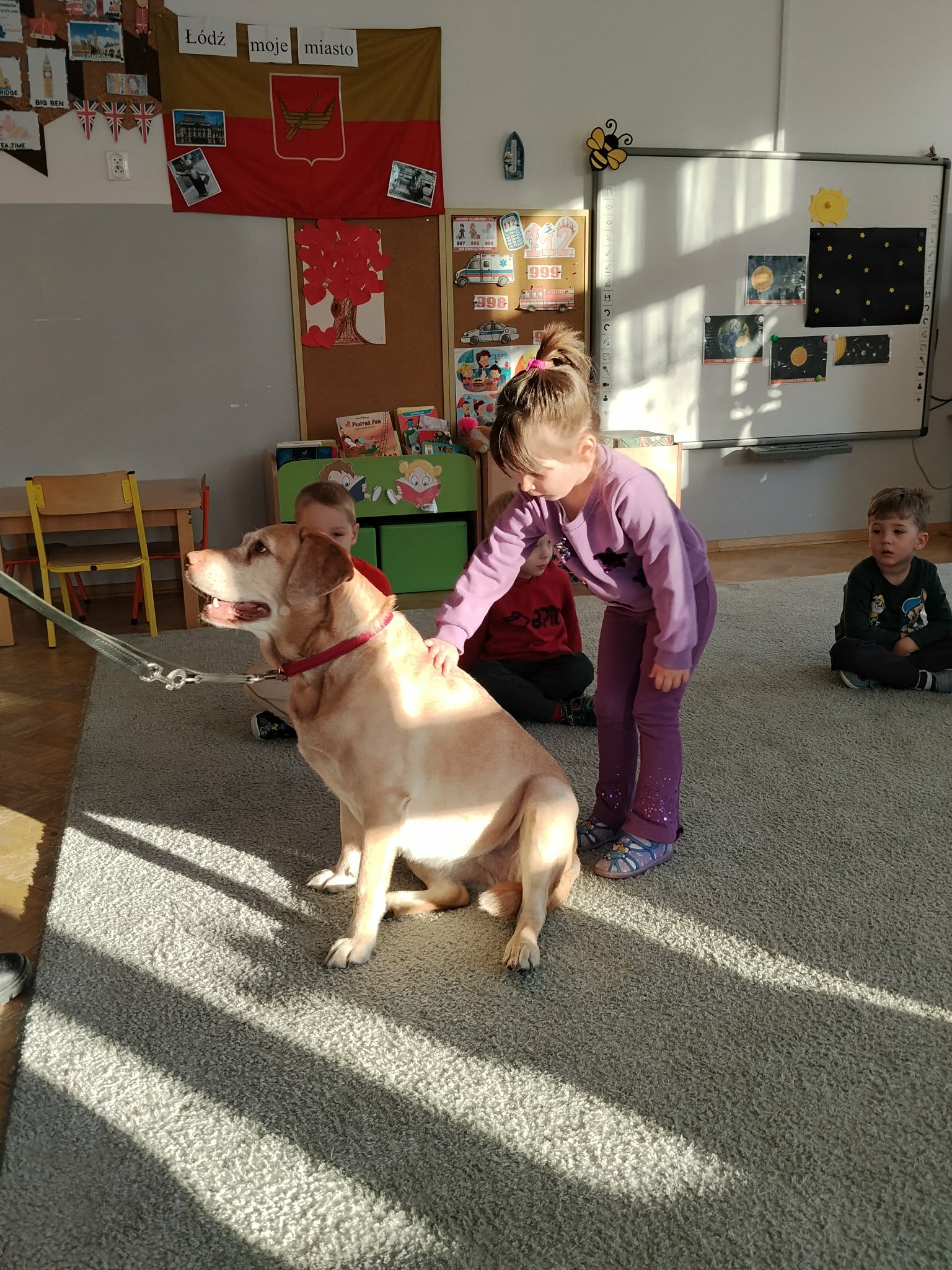 Nasze przedszkolaki wzięły udział w ciekawych i pouczających zajęciach prowadzonych przez Straż Miejską, której towarzyszył wyjątkowy czworonożny gość. Dzieci dowiedziały się, jak bezpiecznie i z szacunkiem zachowywać się wobec zwierząt, jak reagować w kontakcie z nieznanym psem oraz dlaczego tak ważne jest dbanie o ich dobrostan. To była cenna lekcja odpowiedzialności i bezpieczeństwa, która na długo pozostanie w pamięci przedszkolaków.