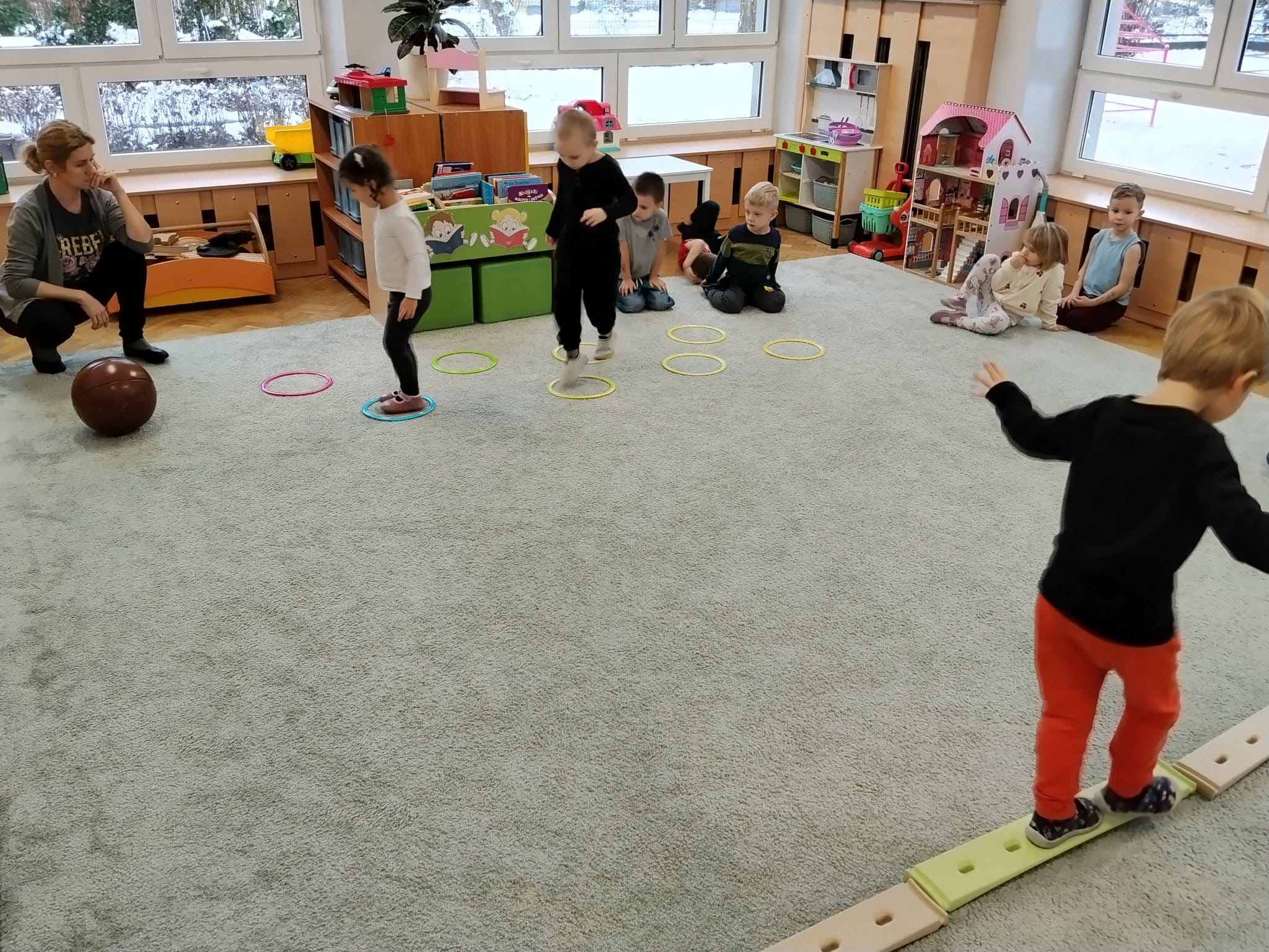 Podczas zajęć ruchowych dzieci z radością pokonują tory przeszkód, rozwijając sprawność fizyczną, koordynację oraz równowagę. Każde zadanie jest okazją do ćwiczenia wytrwałości, odwagi i współpracy, a przy tym dostarcza mnóstwo radości i satysfakcji.