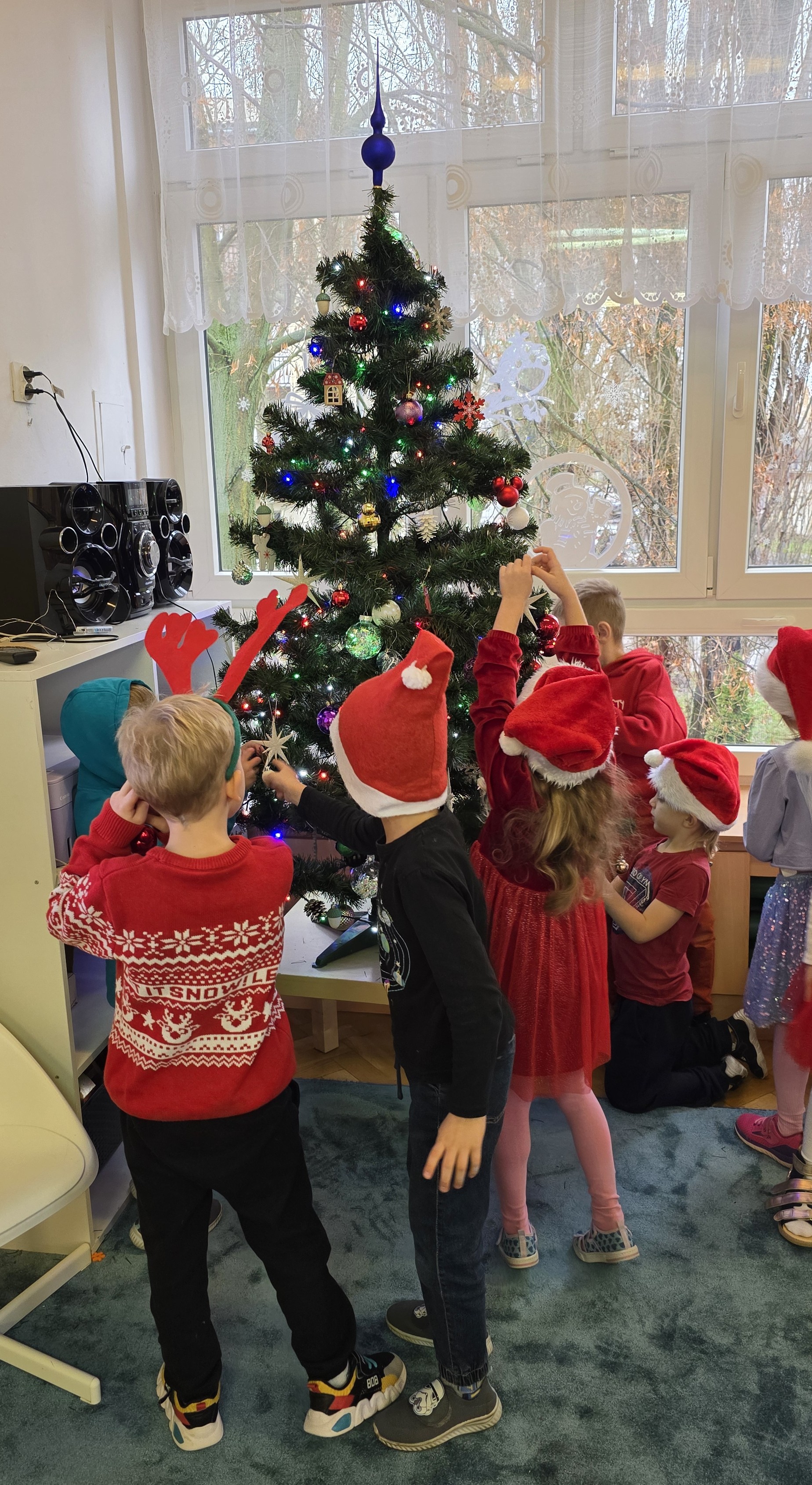 Ubieranie choinki to jedna z wielu pięknych tradycji związanych z Bożym Narodzeniem. Ważki bardzo chętnie włączyły się w strojenie naszego grupowego drzewka. Choinka prezentuje się wspaniale.