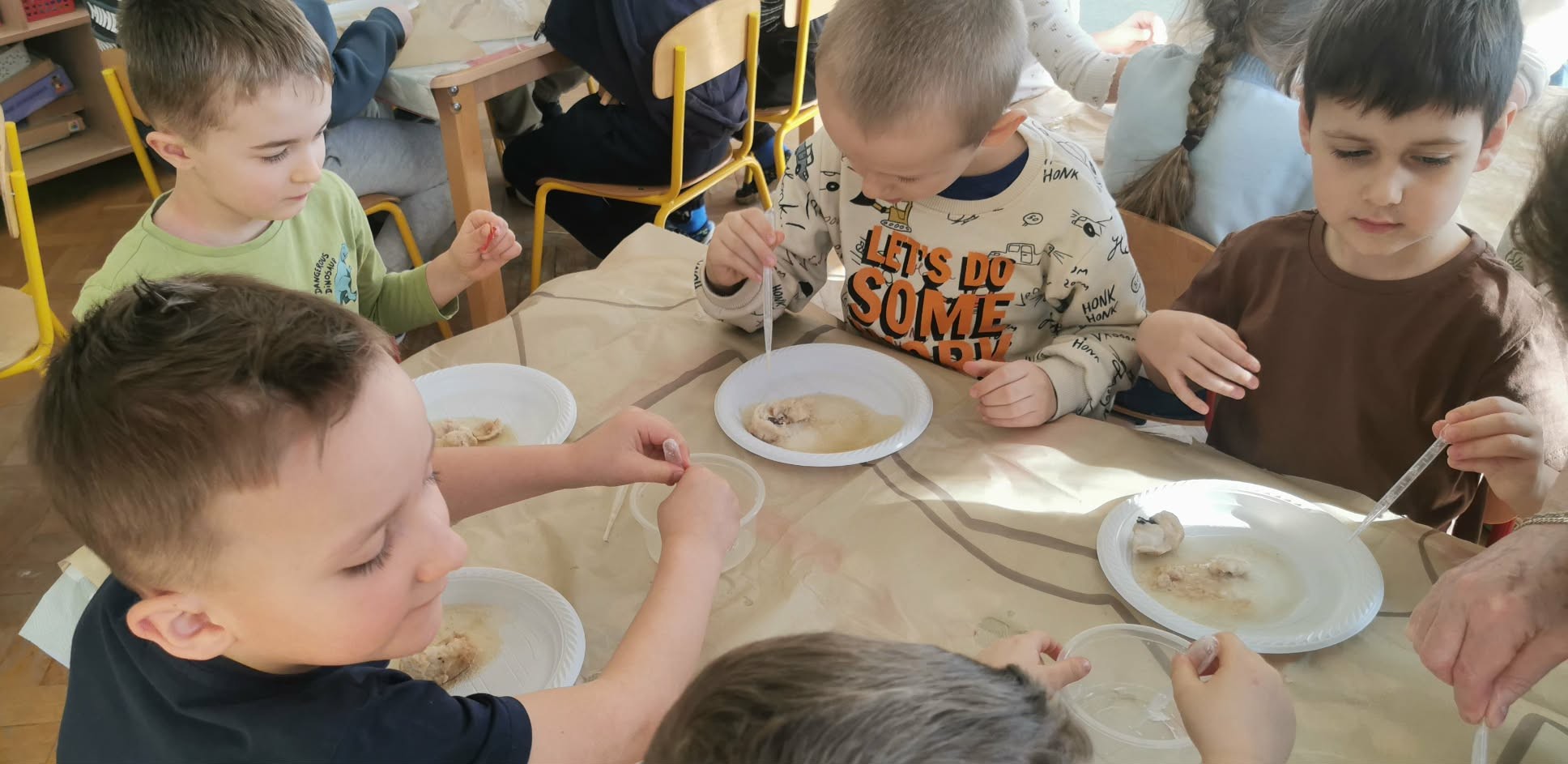 Biedronki uczestniczyły w warsztatach o tematyce nawiązującej do Dnia Dinozaura, który przypada na 26 lutego. Podczas warsztatów dzieci zamieniły się w prawdziwych paleontologów i wyszukiwały m.in. kości dinozaurów, badały wykopaliska oraz łączyły różne ciecze ze sobą.