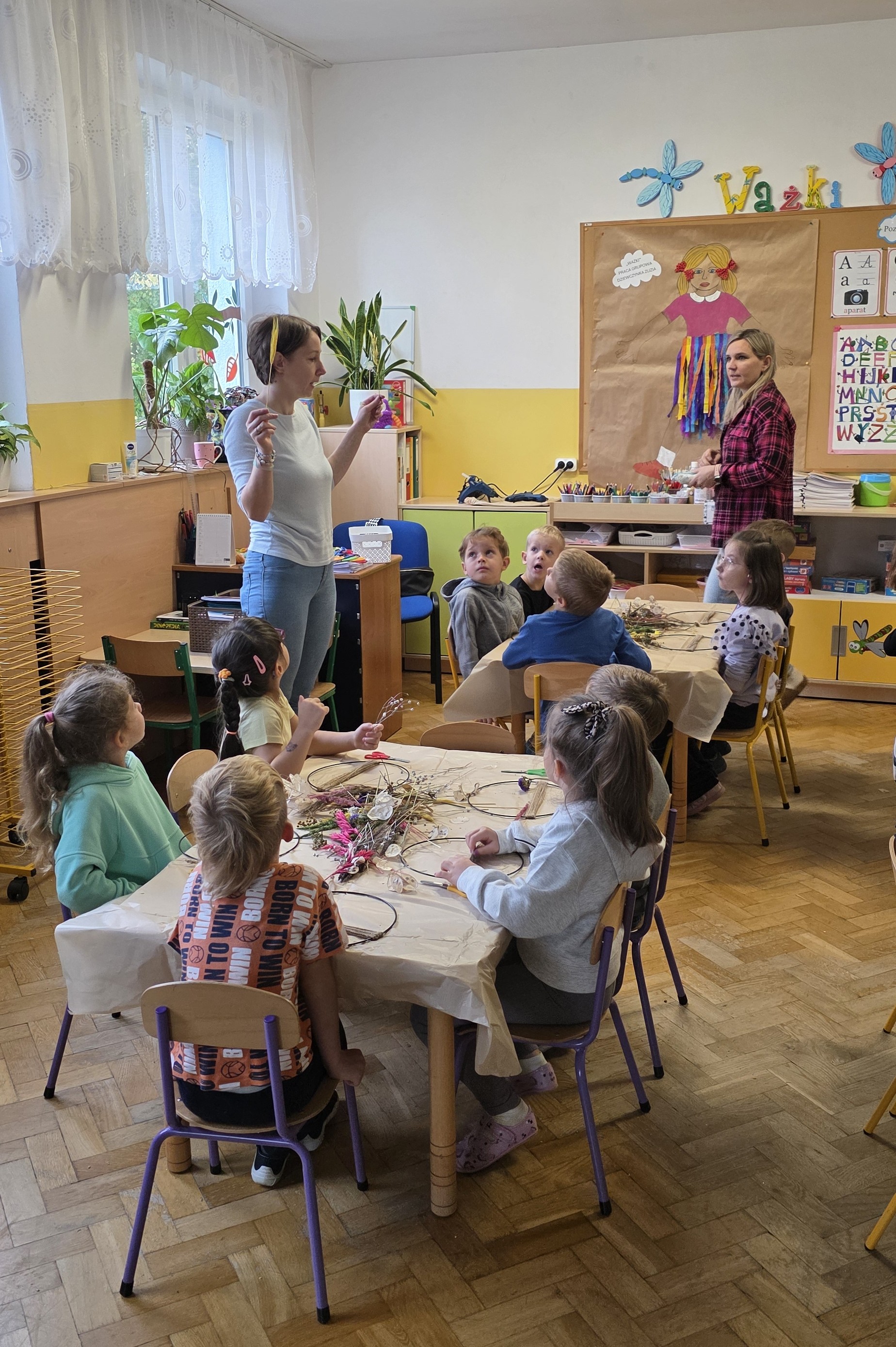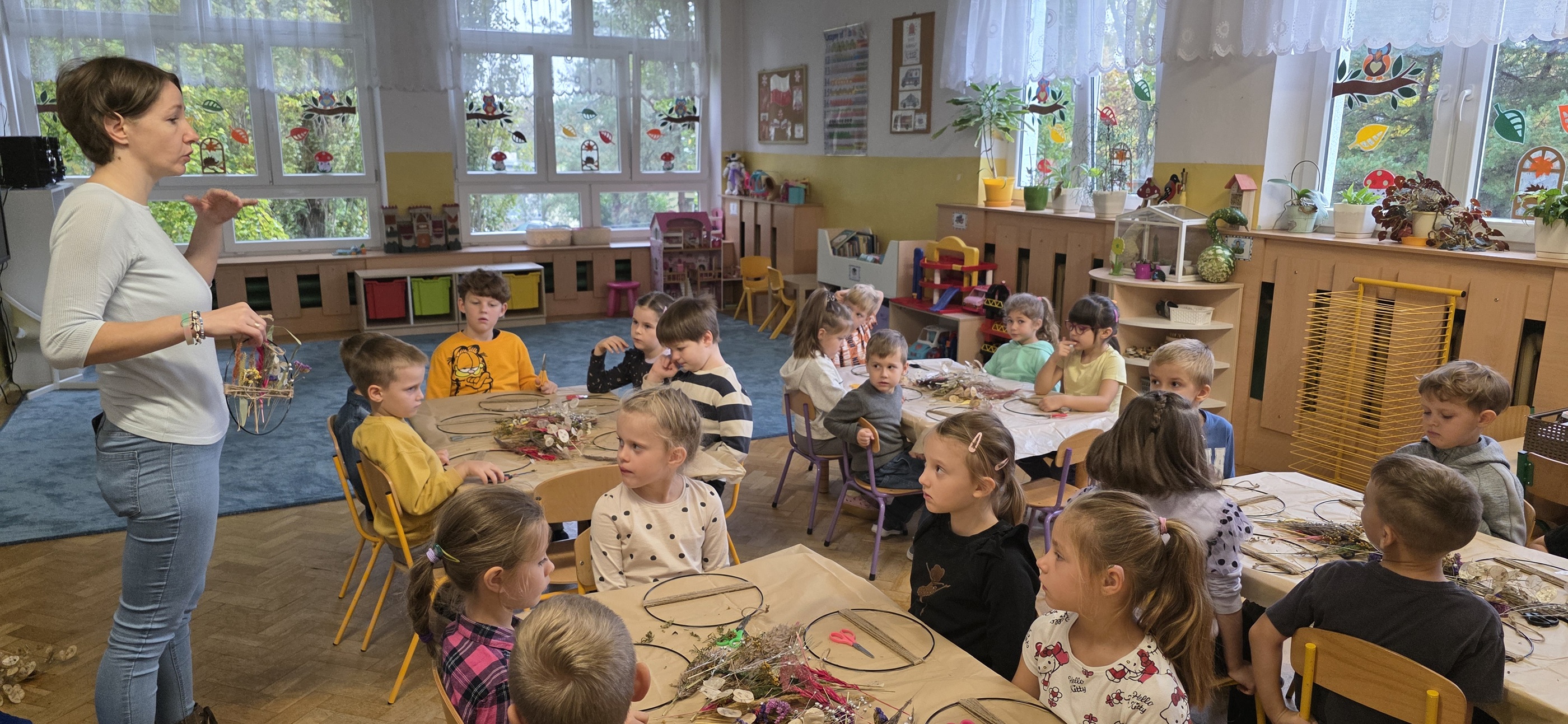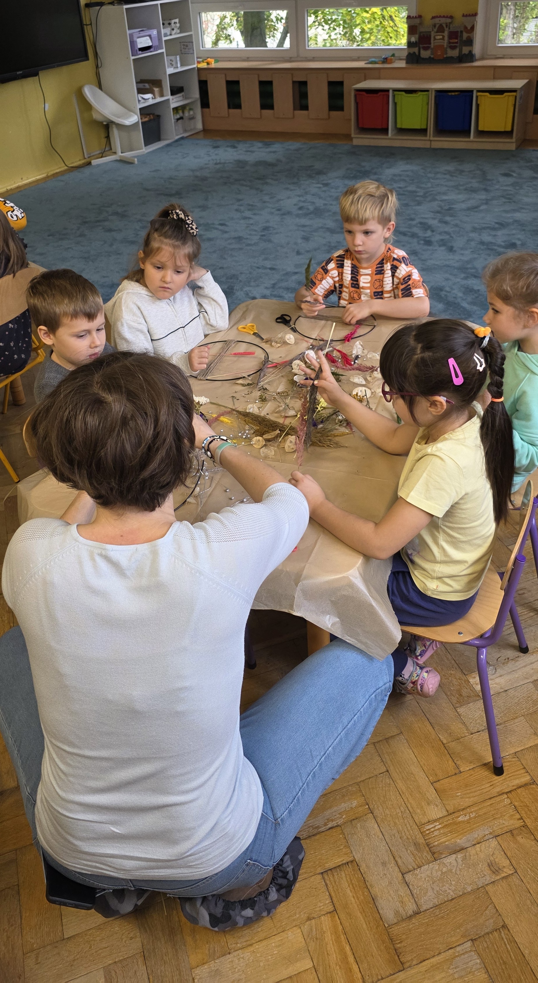 Rozpoczęliśmy regularną współpracę z Pracownią Inwencji Twórczej, miejscem stworzonym dla dzieci, które oferuje warsztaty kreatywne, kulinarne oraz chemiczne. Raz w miesiącu odwiedzać nas będzie Pani Kasia z ciekawymi warsztatami, które mamy nadzieję - zapamiętamy na długo. W dniu dzisiejszym wykonaliśmy piękną kompozycję z elementami suszu na kole - dekorację do powieszenia w domu.