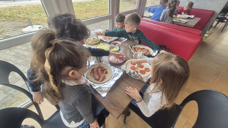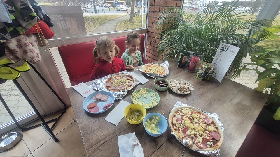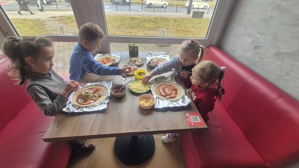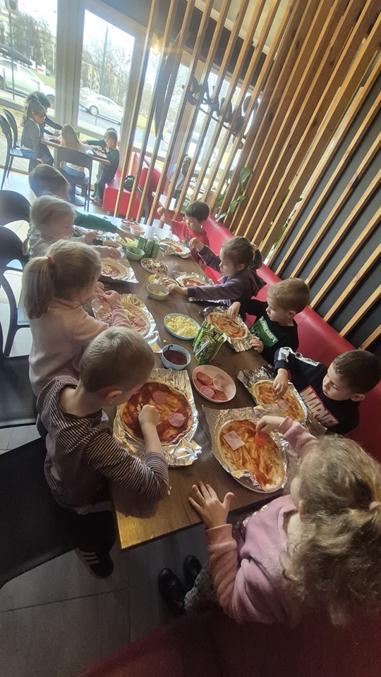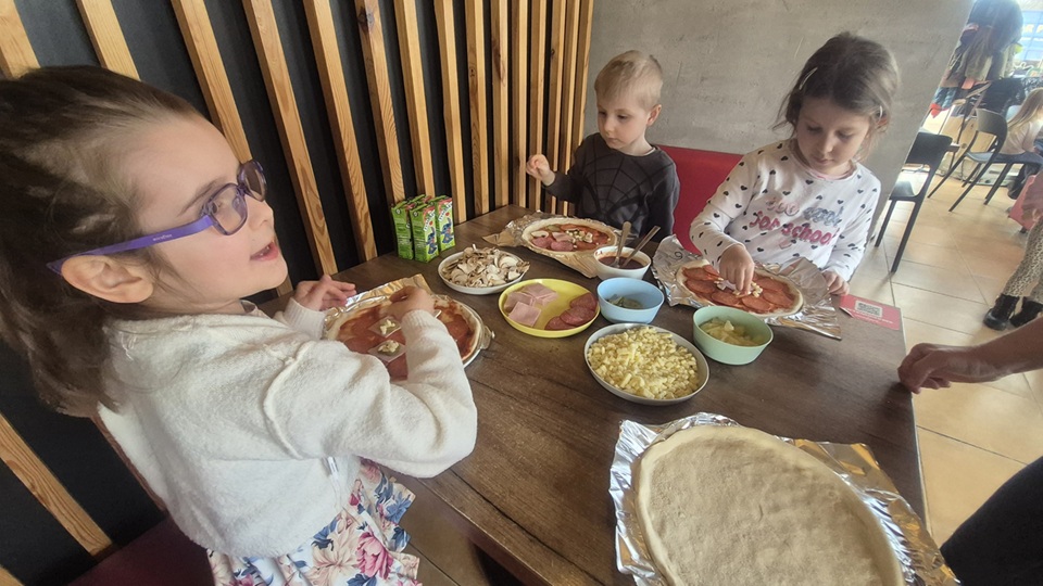 Dzieci z ogromnym zaangażowaniem tworzyły swoje pizze, wykazując się przy tym kreatywnością i radością z działania. Była to nie tylko świetna zabawa, ale także doskonała okazja do rozwijania samodzielności, sprawności manualnej oraz poznawania nowych smaków.