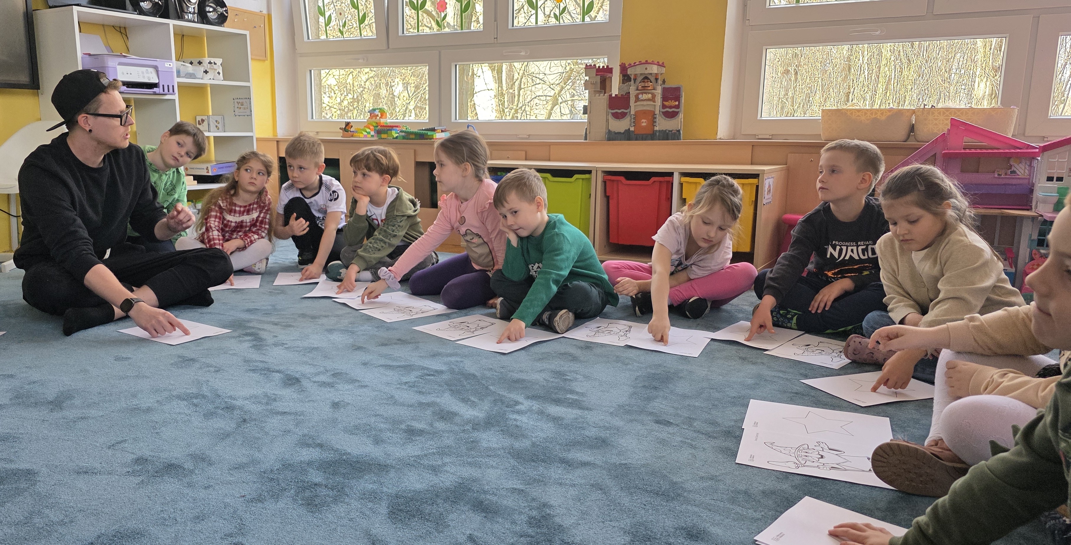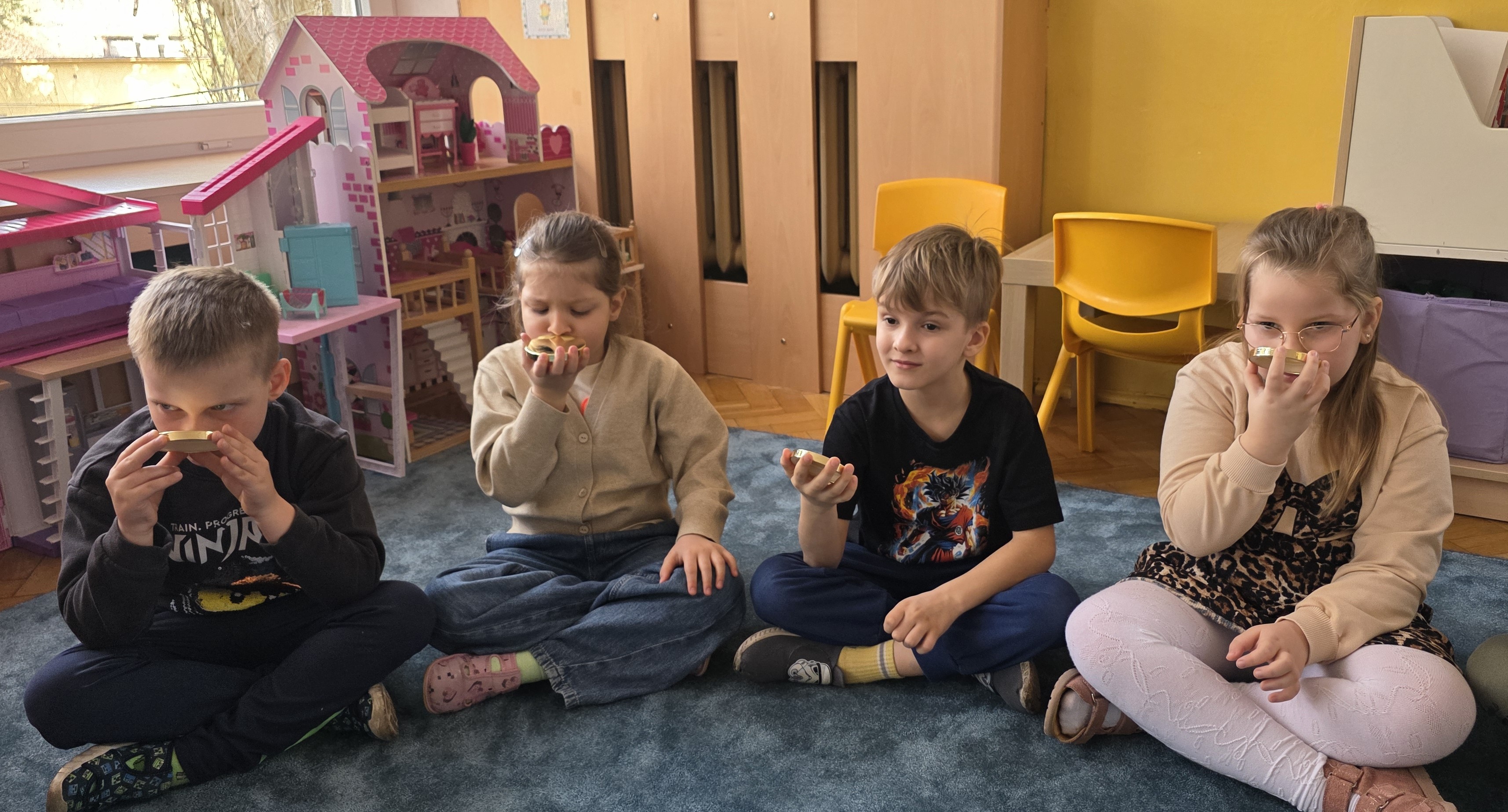 Oddychamy spokojnie… Ważki wzięły udział w warsztatach pt. "Świadomy oddech" prowadzonych przez założycieli Stowarzyszenia Inny Rytm - Panią Kasię i Pana Igora, czyli rodziców naszego młodszego kolegi z grupy "Pszczółki". Poprzez zabawę i ćwiczenia dzieci odkrywały, jak oddech pomaga się uspokoić, wyciszyć i poczuć lepiej w swoim ciele.