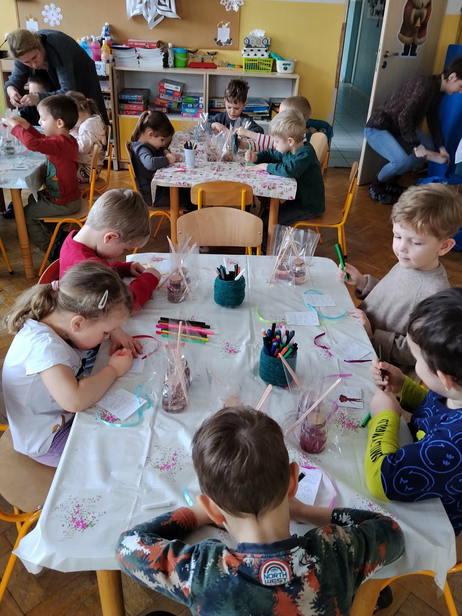 Z okazji Dnia Babci i Dziadka w naszej grupie odbyły się wyjątkowe warsztaty twórcze, podczas których dzieci z wielkim zaangażowaniem przygotowywały zapachowe dyfuzory – prezenty prosto z serca dla swoich najbliższych. Każdy upominek powstał z ogromną starannością, kreatywnością i dziecięcą radością. Własnoręcznie wykonane prezenty to nie tylko piękna pamiątka, ale przede wszystkim wyraz miłości, wdzięczności i pamięci o Babciach i Dziadkach.
