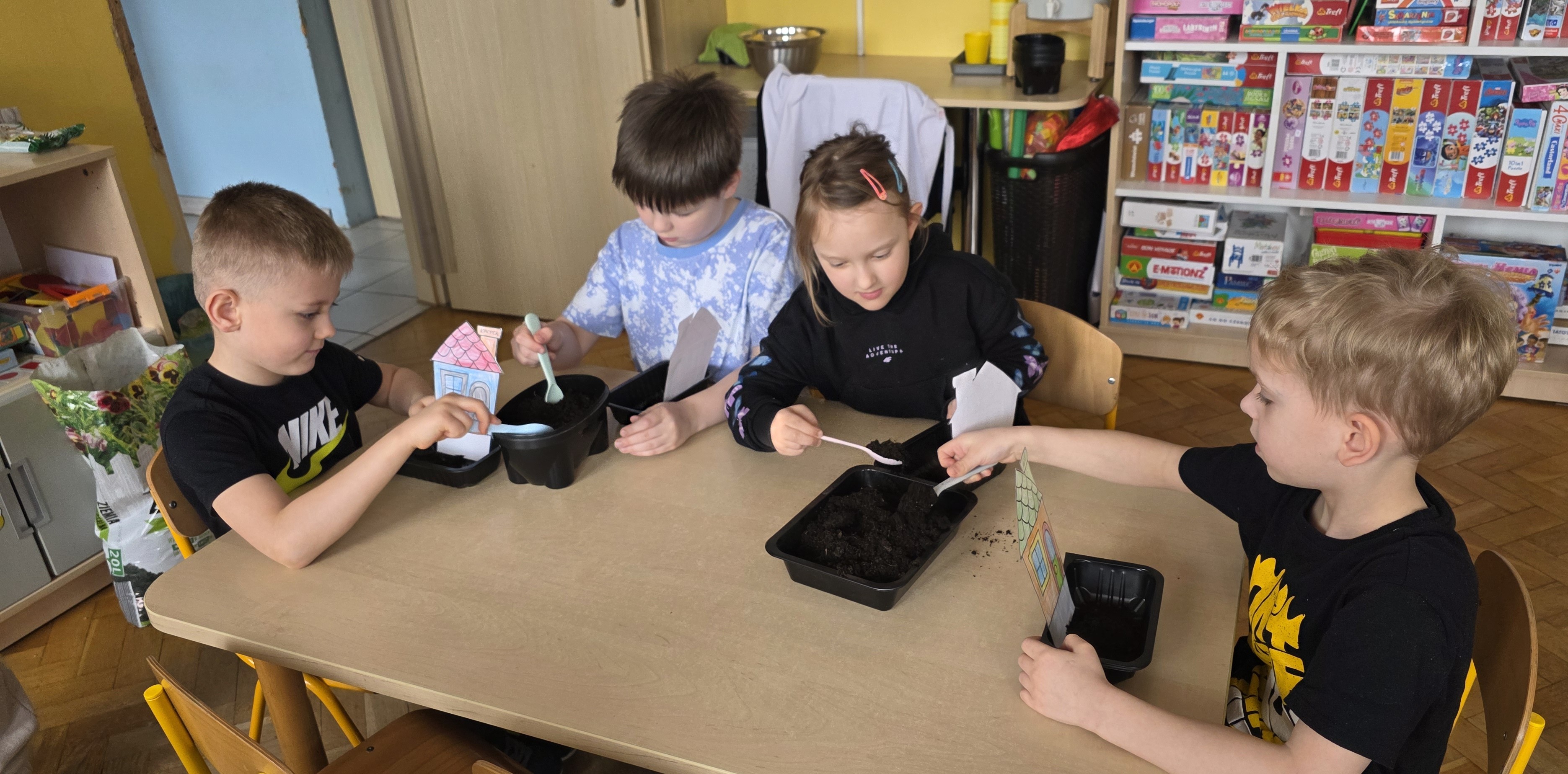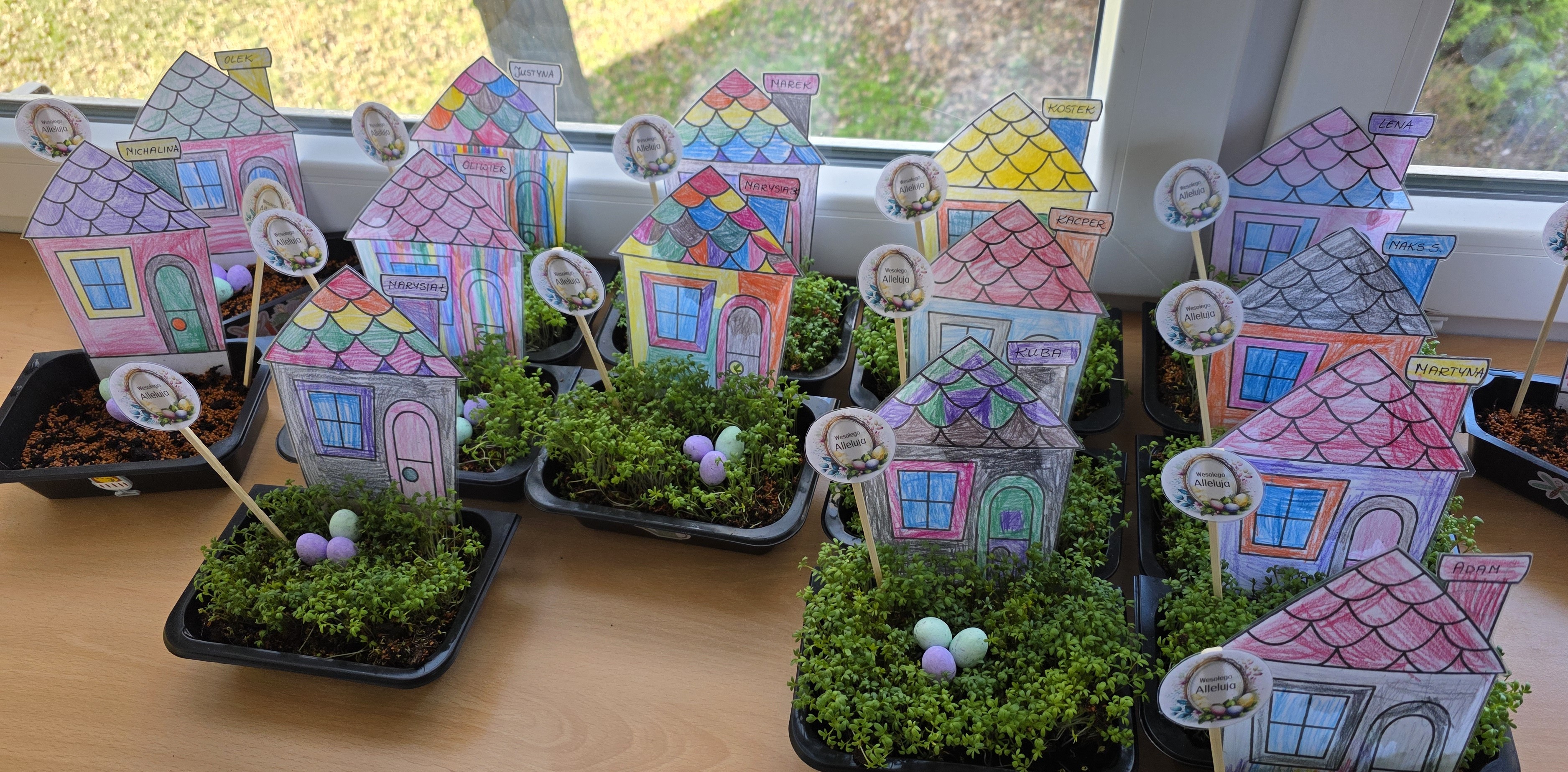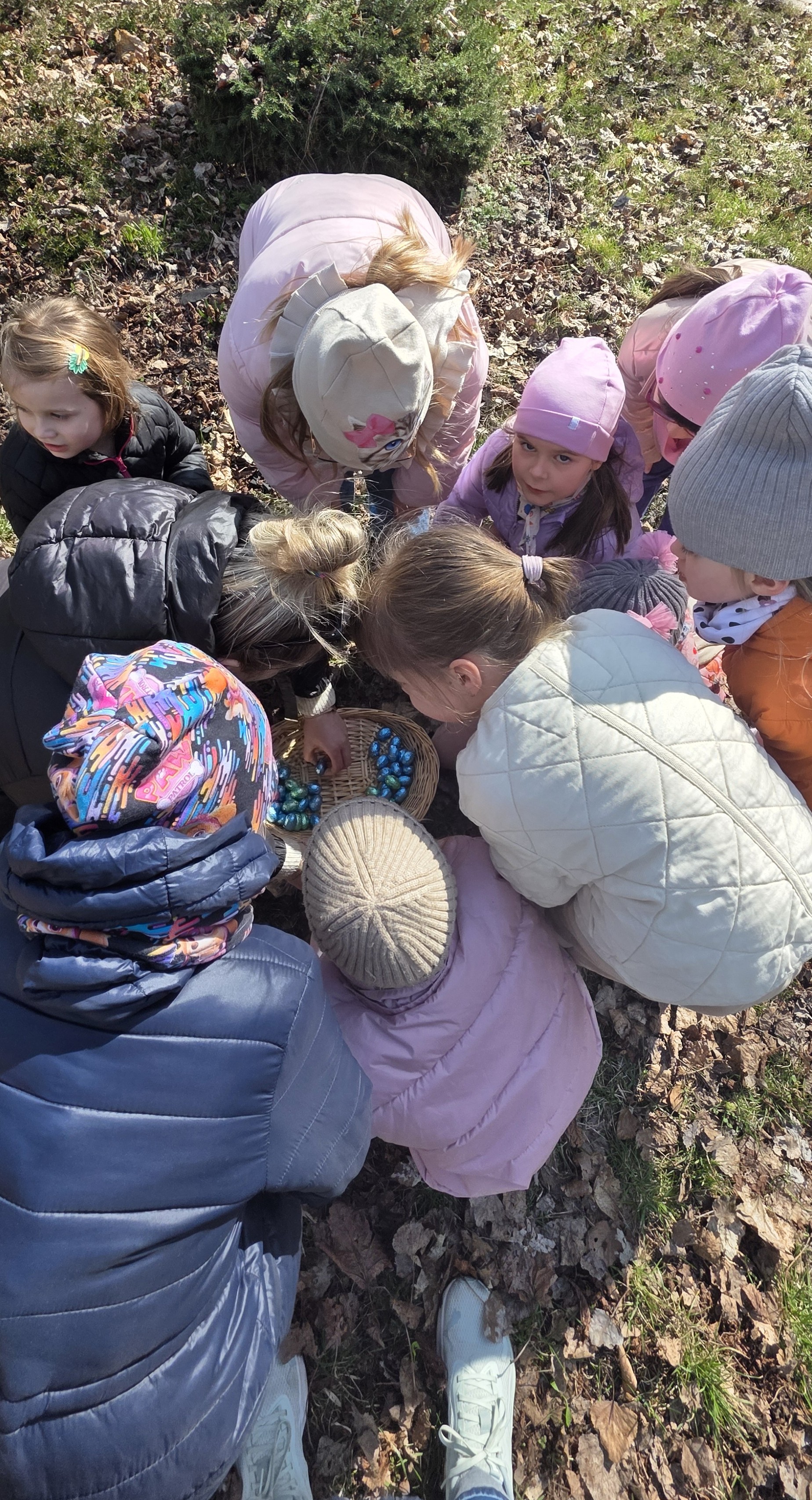 Ostatnie dni w przedszkolu spędziliśmy na działaniach i zabawach związanych ze Świętami Wielkanocnymi. Omówiliśmy tradycje z nimi związane, szukaliśmy ukrytych jajek - w sali i w ogrodzie, wykonaliśmy wiele różnych zadań związanych ze świętami, m.in. pisankowe sudoku, kurczaczkowe dyktando graficzne oraz posialiśmy rzeżuchę, którą mogliśmy poczuć już na samym wejściu do naszej sali.