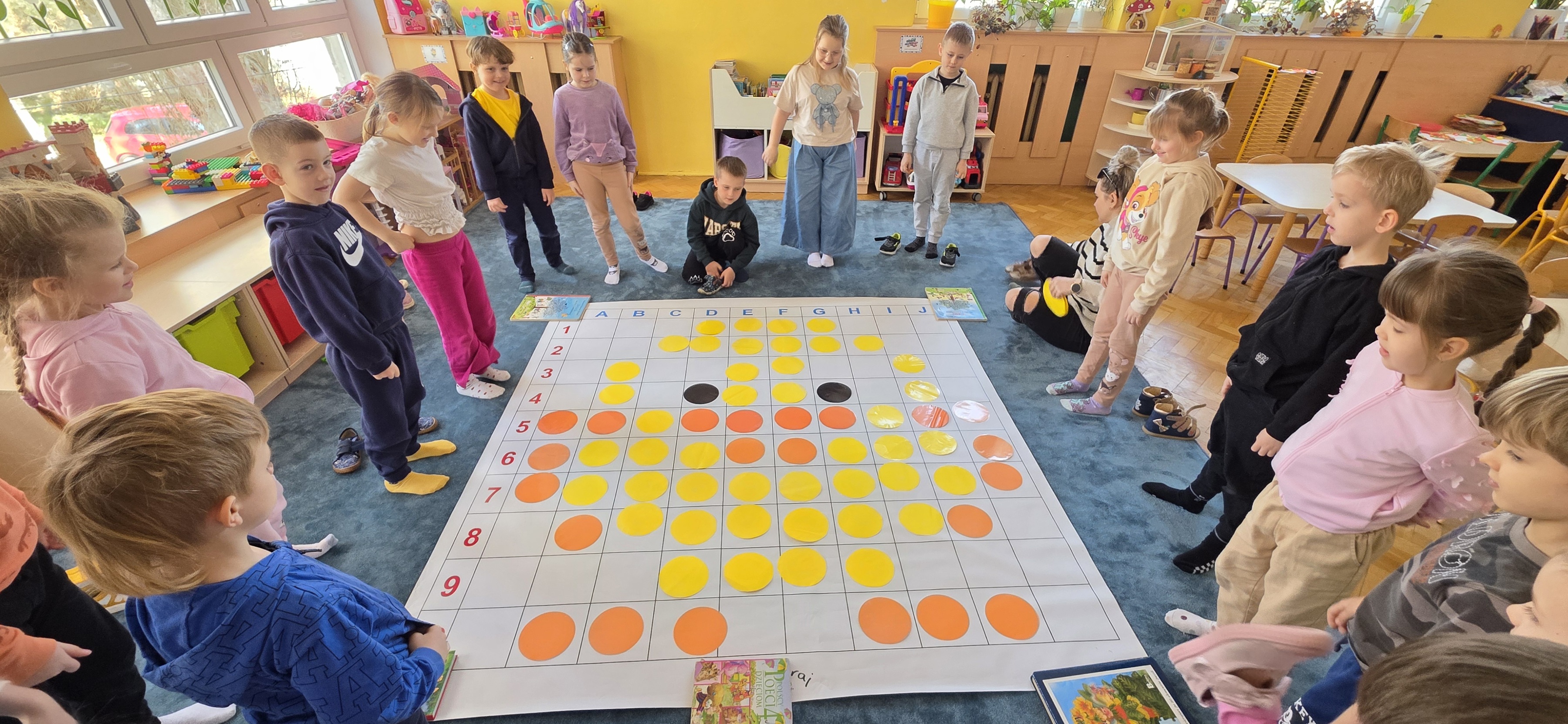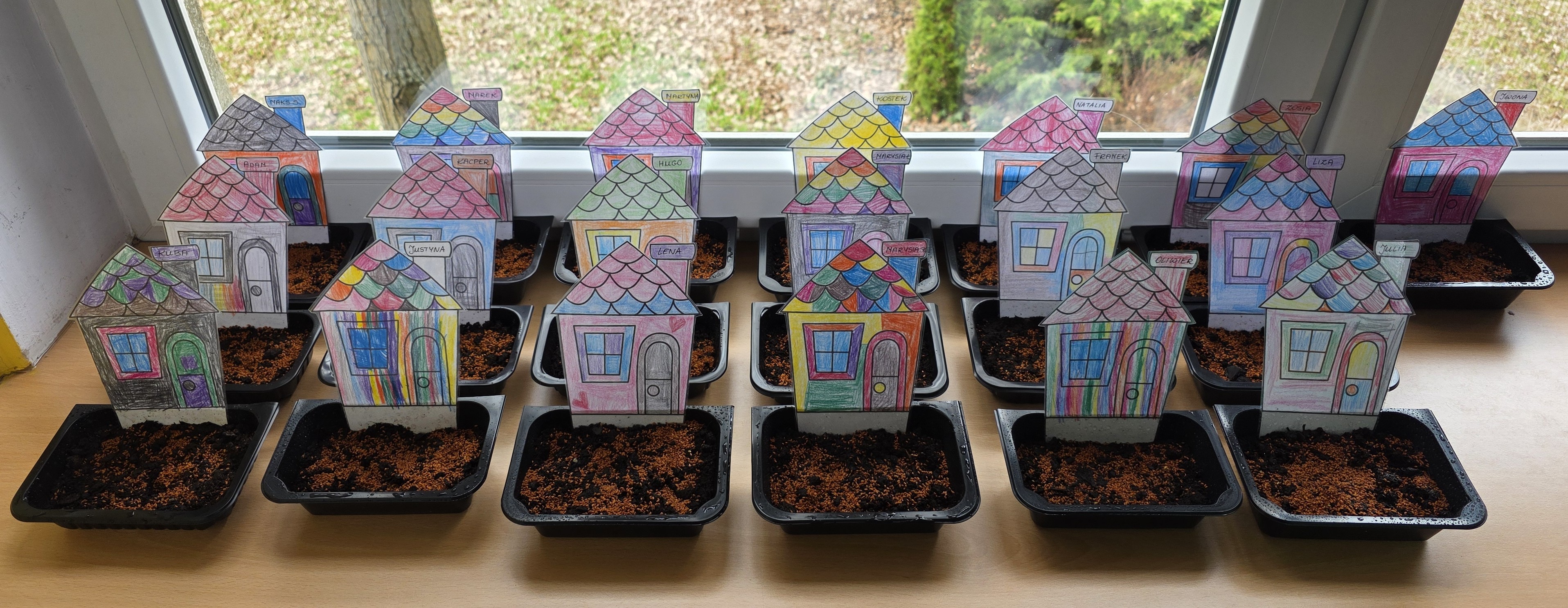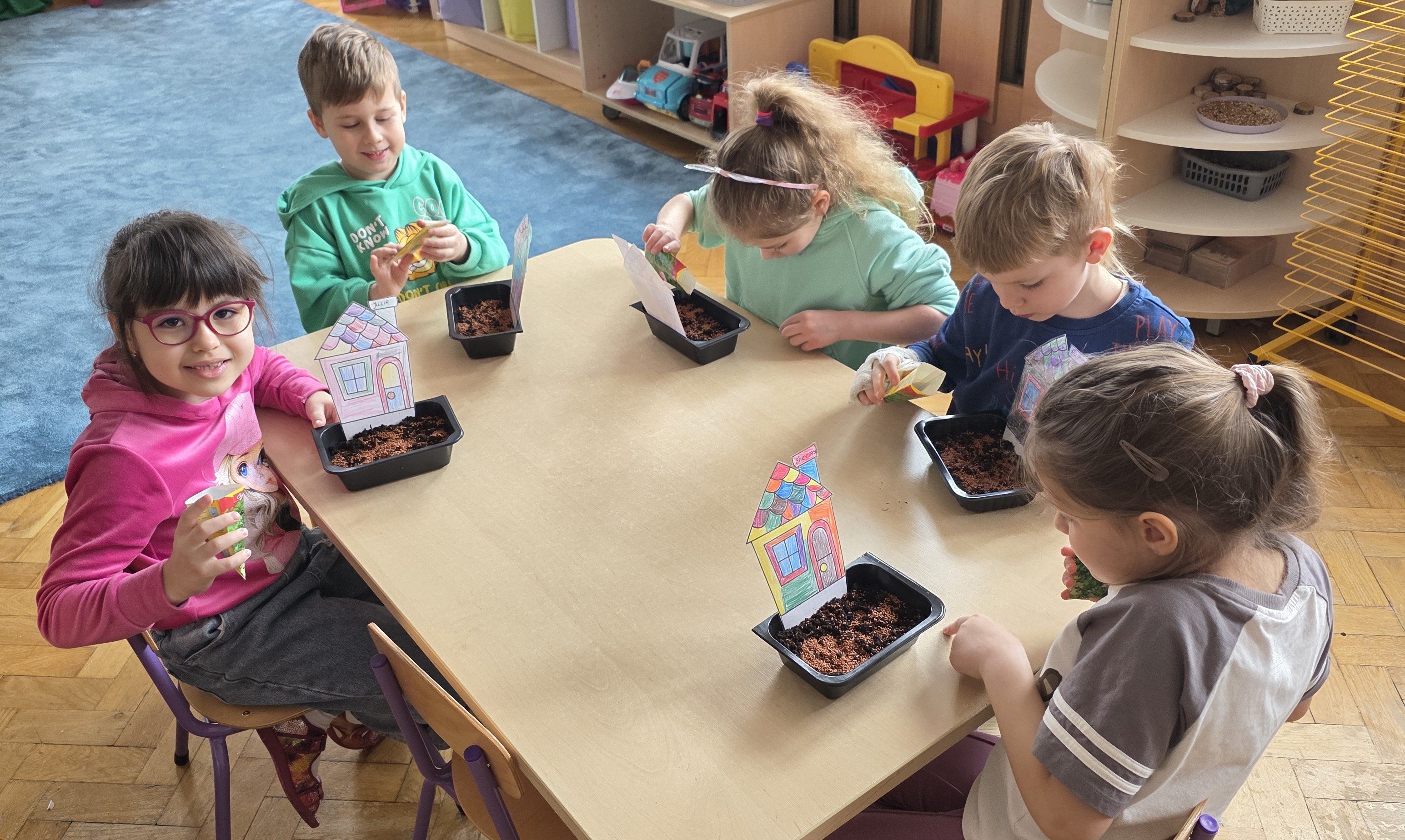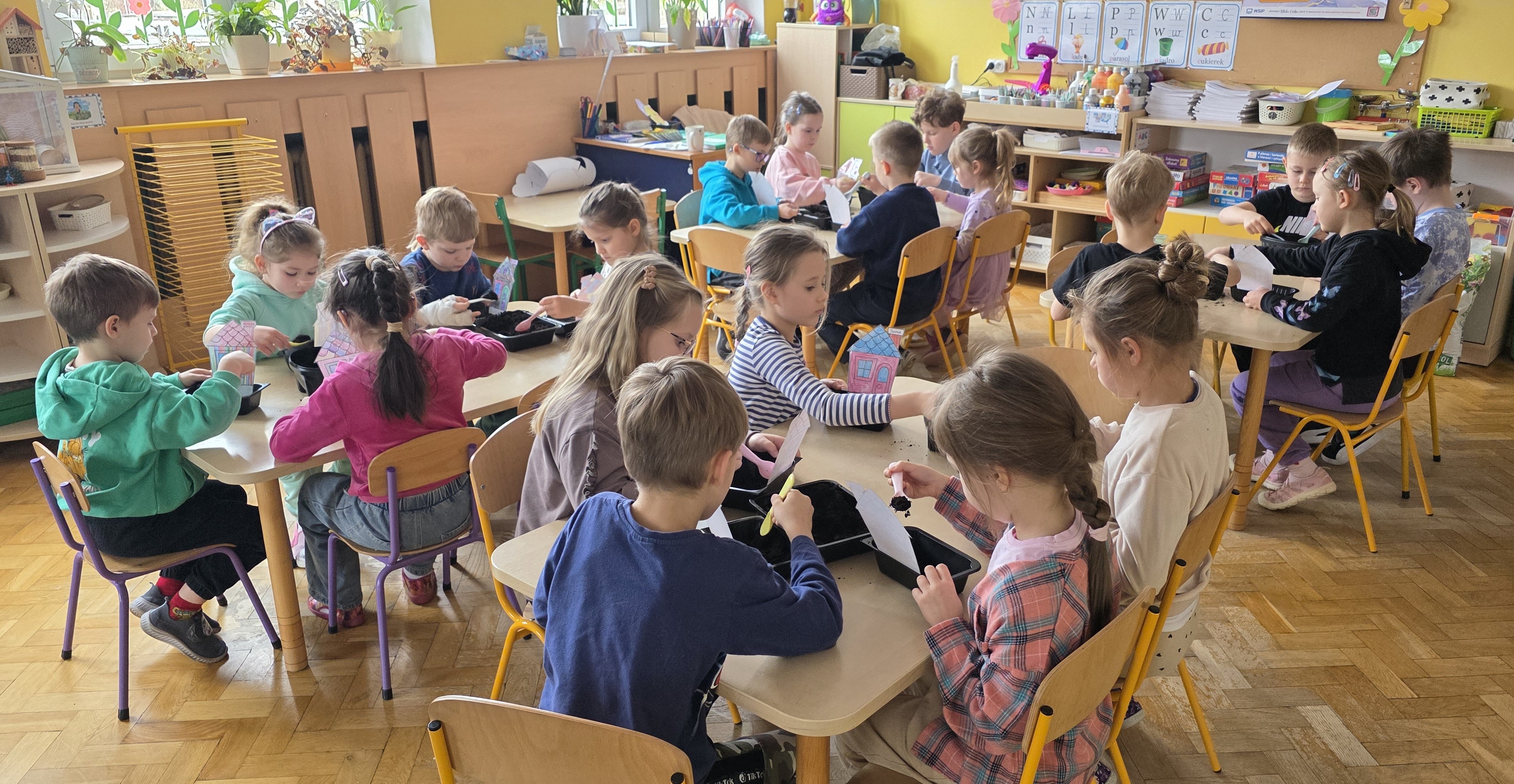 Ostatnie dni w przedszkolu spędziliśmy na działaniach i zabawach związanych ze Świętami Wielkanocnymi. Omówiliśmy tradycje z nimi związane, szukaliśmy ukrytych jajek - w sali i w ogrodzie, wykonaliśmy wiele różnych zadań związanych ze świętami, m.in. pisankowe sudoku, kurczaczkowe dyktando graficzne oraz posialiśmy rzeżuchę, którą mogliśmy poczuć już na samym wejściu do naszej sali.