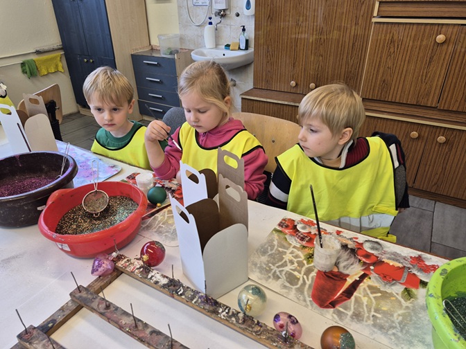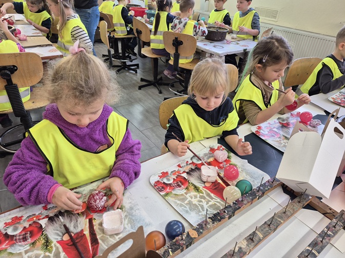 Najwięcej emocji wzbudziły warsztaty malowania bombek. Każde dziecko stworzyło własną, niepowtarzalną ozdobę, wykorzystując brokat i kolorowe dodatki. Wycieczka była nie tylko świetną zabawą, ale też ciekawą lekcją o rzemiośle i tradycjach świątecznych. Dzieci wróciły do domu z własnoręcznie ozdobionymi bombkami i głowami pełnymi wrażeń