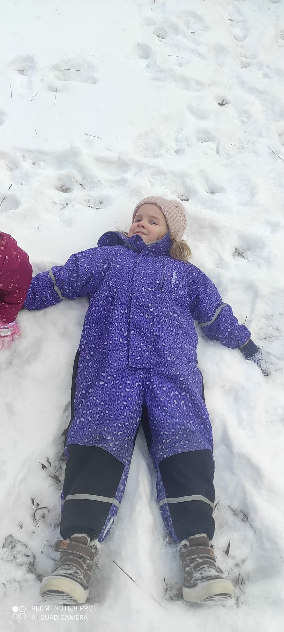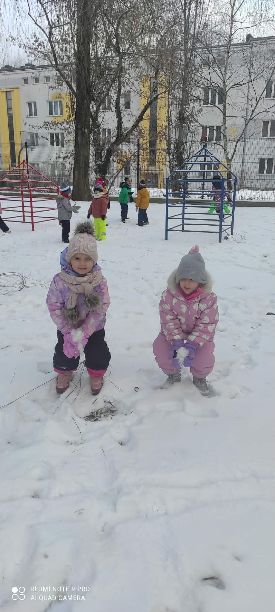 Biedronki korzystając z pięknej zimowej pogody wybrały się do ogródka przedszkolnego, aby pobawić się na śniegu. Zabawy na śniegu sprawiły wiele radości dzieciom.