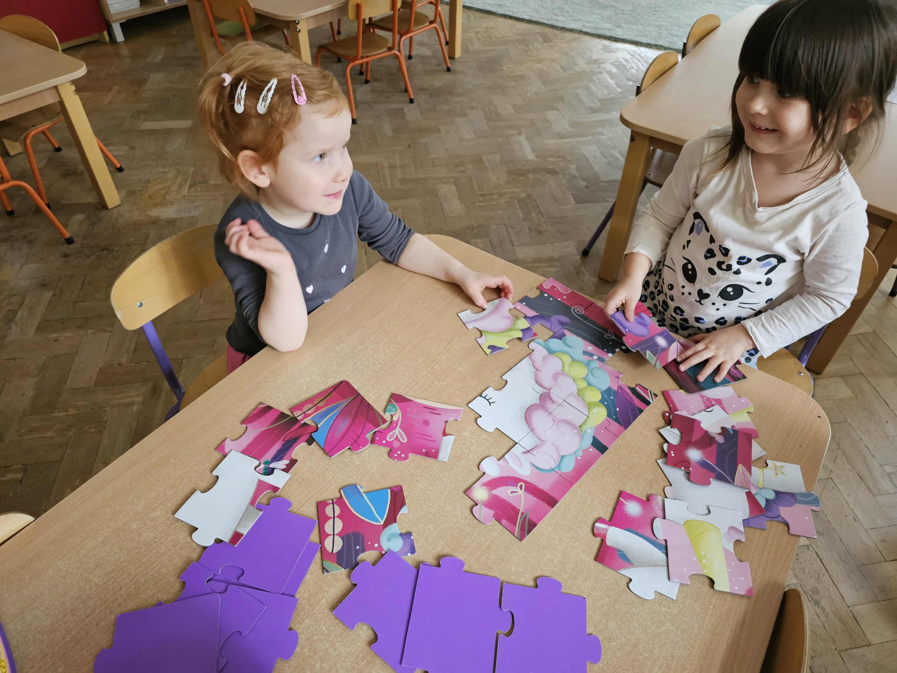 Dzieci spędzają czas twórczo i aktywnie, rozwijając swoje zainteresowania oraz budując przyjaźnie każdego dnia. Podczas codziennych zabaw dzieci uczą się współpracy, dzielenia przestrzeni i pomysłów z rówieśnikami. Każda aktywność wspiera rozwój społeczny, emocjonalny i poznawczy naszych przedszkolaków.