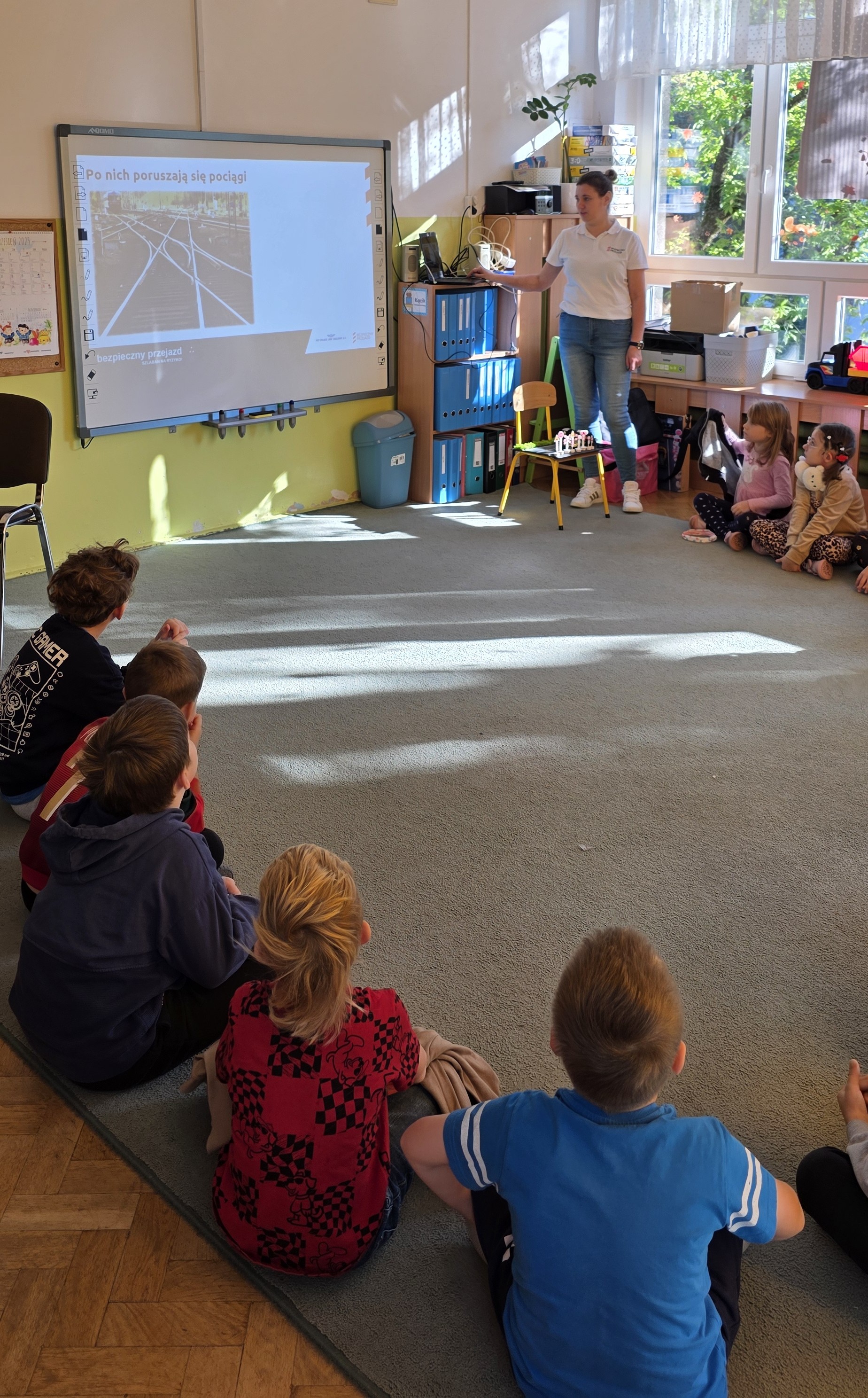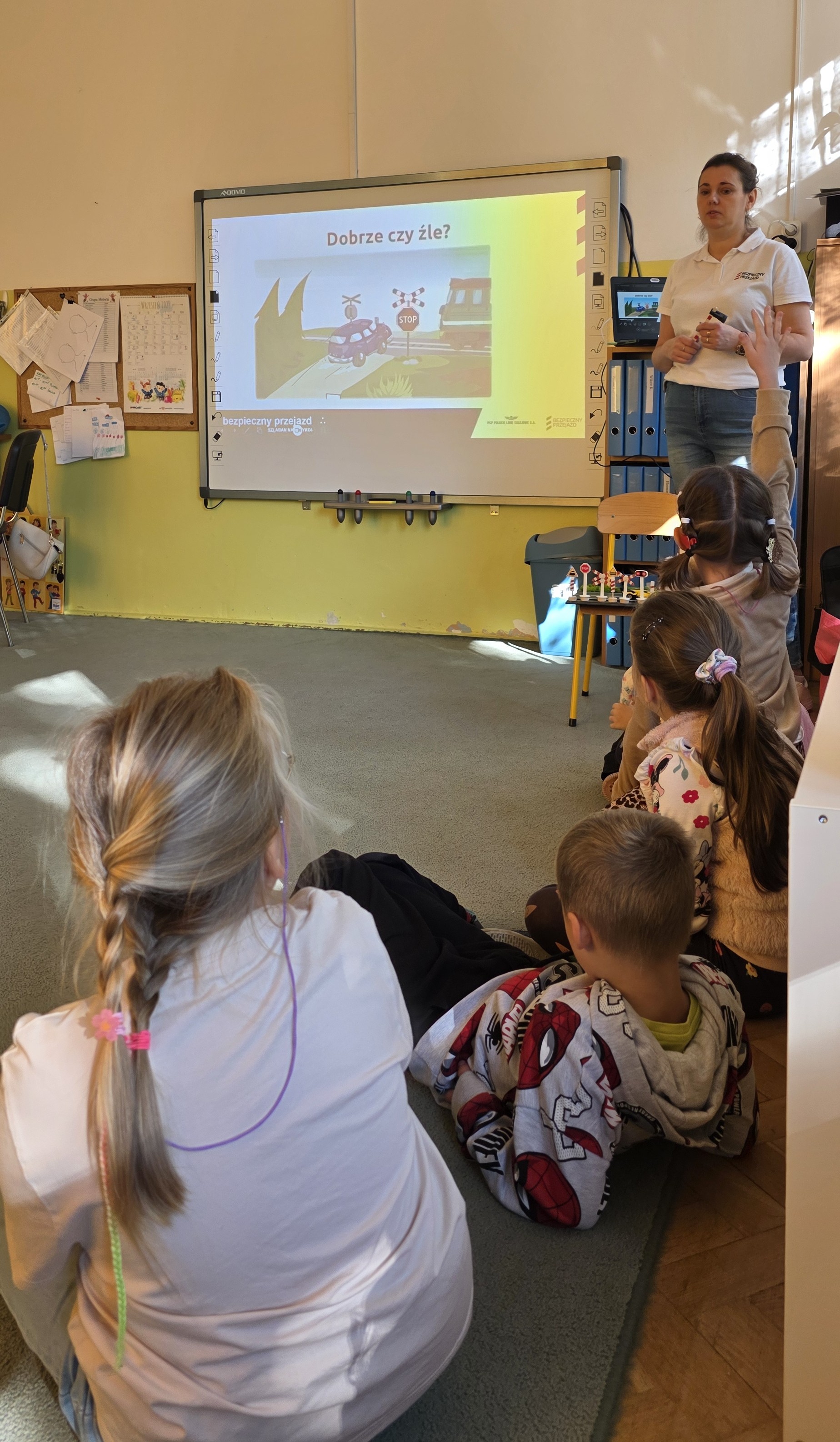 W dniu dzisiejszym uczestniczyliśmy w zajęciach edukacyjnych w ramach kampanii społecznej "Bezpieczny przejazd" organizowanych przez PKP Polskie Linie Kolejowe S.A. Dzieci podczas spotkania przypomniały sobie zasady obowiązujące na przejazdach kolejowo-drogowych.