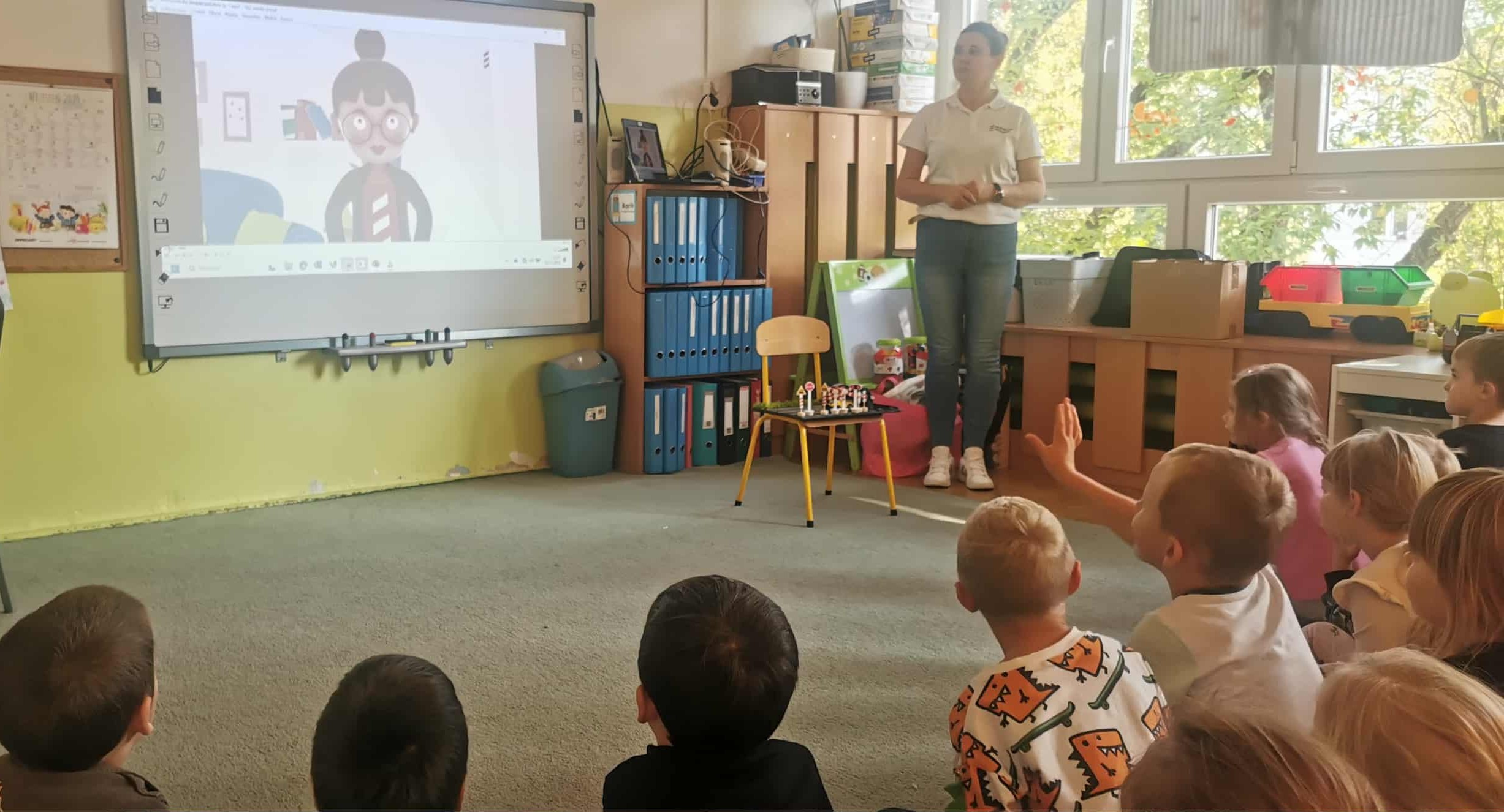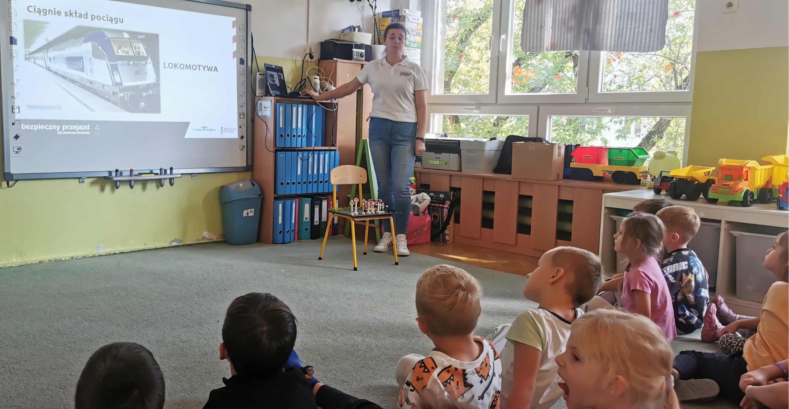 Dzieci uczestniczyły w zajęciach edukacyjnych w ramach kampanii społecznej "Bezpieczny przejazd", poprowadzony przez ambasadorkę bezpieczeństwa PKP Polskie Linie Kolejowe S.A.