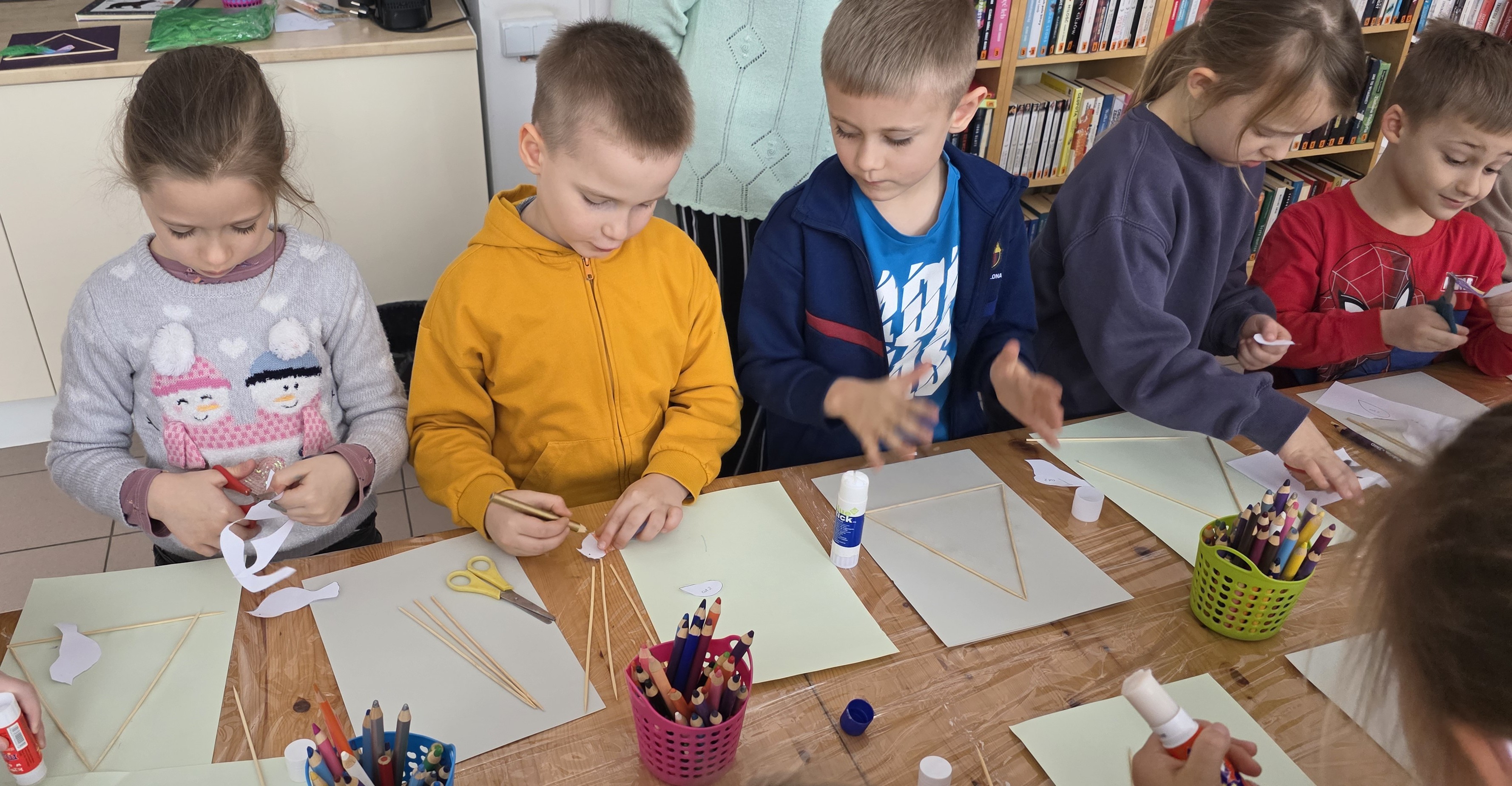 Po raz kolejny wybraliśmy się do zaprzyjaźnionej Biblioteki Miejskiej "Traf", aby uczestniczyć w ciekawym spotkaniu z książką. Podczas zajęć wysłuchaliśmy opowiadania o tematyce zimowej oraz rozmawialiśmy o zwierzętach, które zostają na zimę w Polsce. Wspólnie zastanawialiśmy się, jak radzą sobie w chłodne miesiące i w jaki sposób możemy pomóc im przetrwać ten trudny czas. Na zakończenie wykonaliśmy piękne prace plastyczne „Ptaszki w karmniku”.