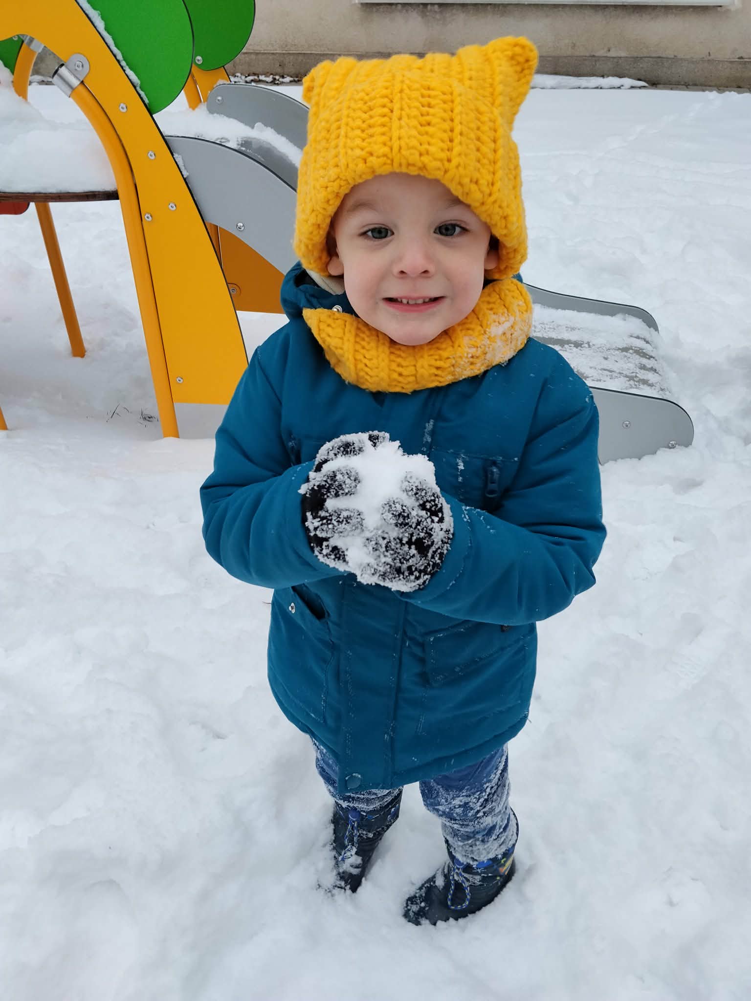 Śnieg zamienił przedszkolny ogród w prawdziwą krainę zimowych radości! Dzieci z entuzjazmem korzystały z uroków zimy – były zabawy na śniegu, ruch na świeżym powietrzu i mnóstwo uśmiechu.